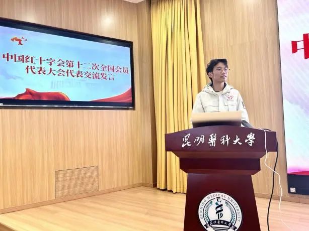 中国红十字会第十二次全国会员代表大会代表云南省红十字人道资源动员中心主任李艳华、云南师范大学研究生金瑞博和米兰milan官方网站本科生鲁金昊进行交流发言。三位代表向与会人员传达了习近平总书记致信中国红十字会第十二次全国会员代表大会精神和大会精神,分享了收获与感悟,表示在接下来的工作中,将以更加昂扬的姿态投身红十字事业,牢记初心使命,勇担时代重任,在矢志奋斗中为红十字事业高质量发展贡献力量。
