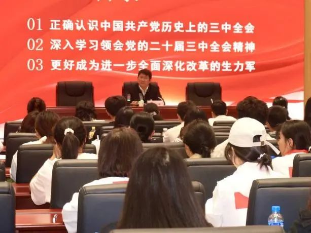 云南省红十字会党组成员、副会长李加坤围绕“学习贯彻党的二十届三中全会精神,为推进中国式现代化贡献红十字青年力量”这一主题展开专题宣讲。李加坤副会长深入讲解了中国共产党历史上的三中全会及党的二十届三中全会精神,激励与会红十字青年立大志、明大德、成大才、担大任,更好成为进一步全面深化改革的生力军,为实现中国式现代化奉献自己的青春力量。