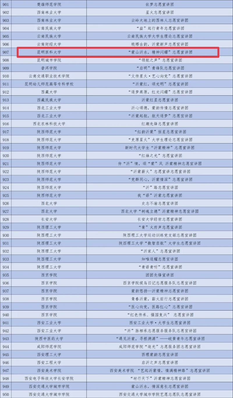 为深入学习宣传贯彻习近平新时代中国特色社会主义思想和党的二十届三中全会精神,落实“强国复兴有我”群众性主题宣传教育活动相关要求,团中央青年志愿者行动指导中心联合相关地方部门,分别发布了《关于遴选2024年全国大学生沂蒙精神志愿宣讲团的公告》以及《关于遴选2024年全国大学生遵义会议精神志愿宣讲团的公告》,引导青年学生弘扬沂蒙精神、遵义会议精神,赓续红色血脉。我校“蒙山沂水,精神闪耀”志愿宣讲团入选2024年全国大学生沂蒙精神志愿宣讲团;“党青心相连”志愿宣讲团入选2024年全国大学生遵义会议精神宣讲团。
