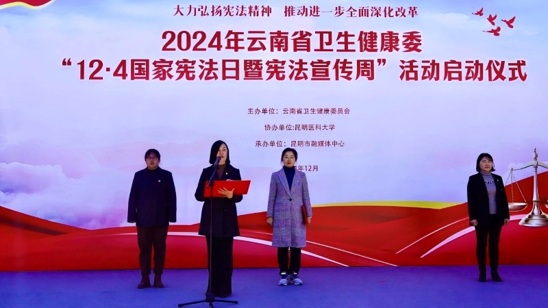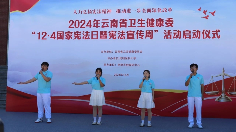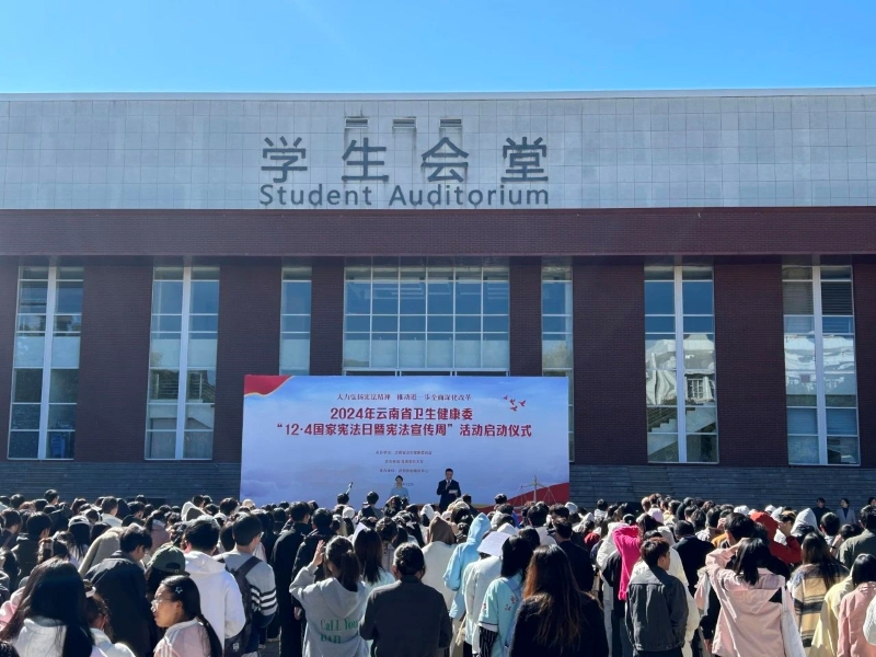12月4日,云南省卫生健康委员会“12·4国家宪法日暨宪法宣传周”活动在我校启动,省卫生健康委李勇勤副主任、米兰milan官方网站奚春睿副校长、省卫健委法规处负责人、学校相关职能部门负责人以及师生代表500余人参加启动仪式。