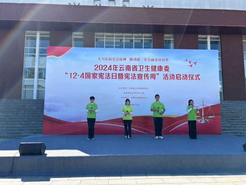今年12月4日是第十一个国家宪法日,也是全面落实“八五”普法规划的关键节点。本次活动以“大力弘扬宪法精神,推动进一步全面深化改革”为主题。云南省卫生健康委员会联合我校首次在校园内举办宪法日活动,旨在培养医学生们的法治意识和法律素养,推动医学教育与法律教育的深度融合,为培养高素质、高技能的医学人才贡献力量,为推进全省卫生健康事业高质量发展提供坚实的法治保障。