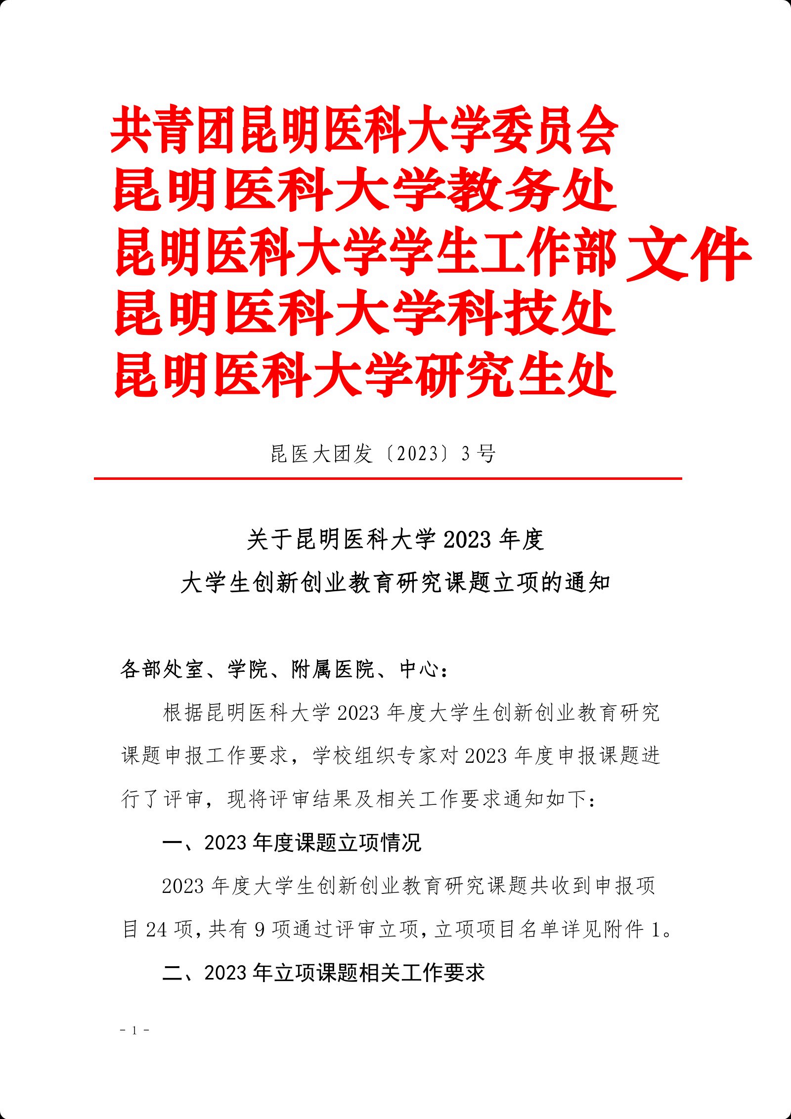 关于米兰milan官方网站2023年度大学生创新创业教育研究课题立项的通知