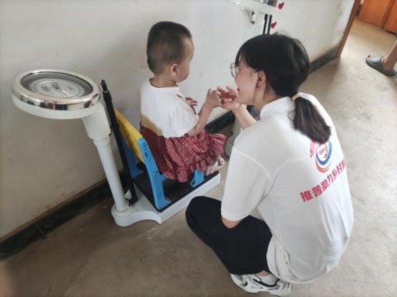 实践团成员们在云南省曲靖市富源县营上镇都格村委会卫生室参与了该卫生室的儿童体检工作。成员们利用此次体检,为已满三岁的儿童进行了一些基本的普通话基础跟读,同时与儿童家长进行沟通,让儿童在家也可以自行进行跟读,打好普通话基础。