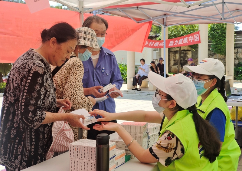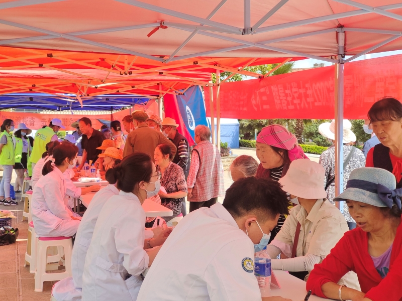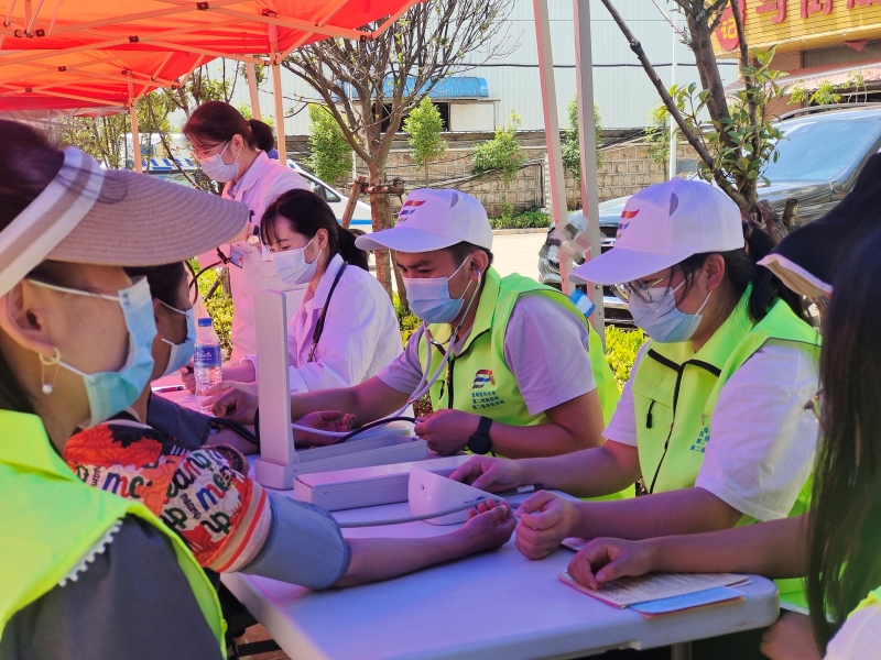 7月14日,实践队员到达海口镇云光社区。队员们迅速投入到工作,临床营养科彭建志副主任营养师、眼科陈蓉医师、心内三病区凌露医师在服务点开展义诊。实践队员为群众免费测量血压,免费发放药品并指导合理用药,同时还为群众提供普通外科 、呼吸内科、消化内科等方面的健康咨询服务。此次义诊活动测量血压60人次,服务群众80余人次。