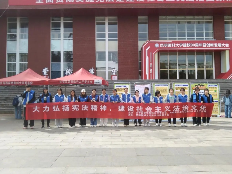 12月4日上午,同学们来到了图书馆前领取宪法宣传折页和宪法条文,由工作人员领读,同学们站在红旗下进行宪法宣读,书声朗朗,庄严肃穆,尽显昆医学子昂扬向上的精神面貌。