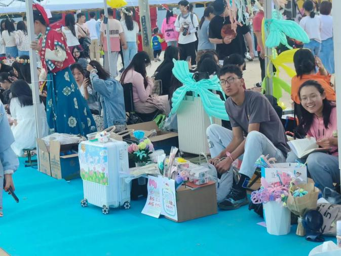 (3)呈贡区“青春集市摊主招募令”活动。协会积极链接校外资源,受呈贡团区委的邀请,组织本校同学前往斗南花市参加创意集市活动。通过连续两天的经历,各摊主走出校园,认识到了当下消费者的特点和需求,并对创业的困难有了深刻的认知,让实践是检验真理的唯一标准,以实践带动能力训练。