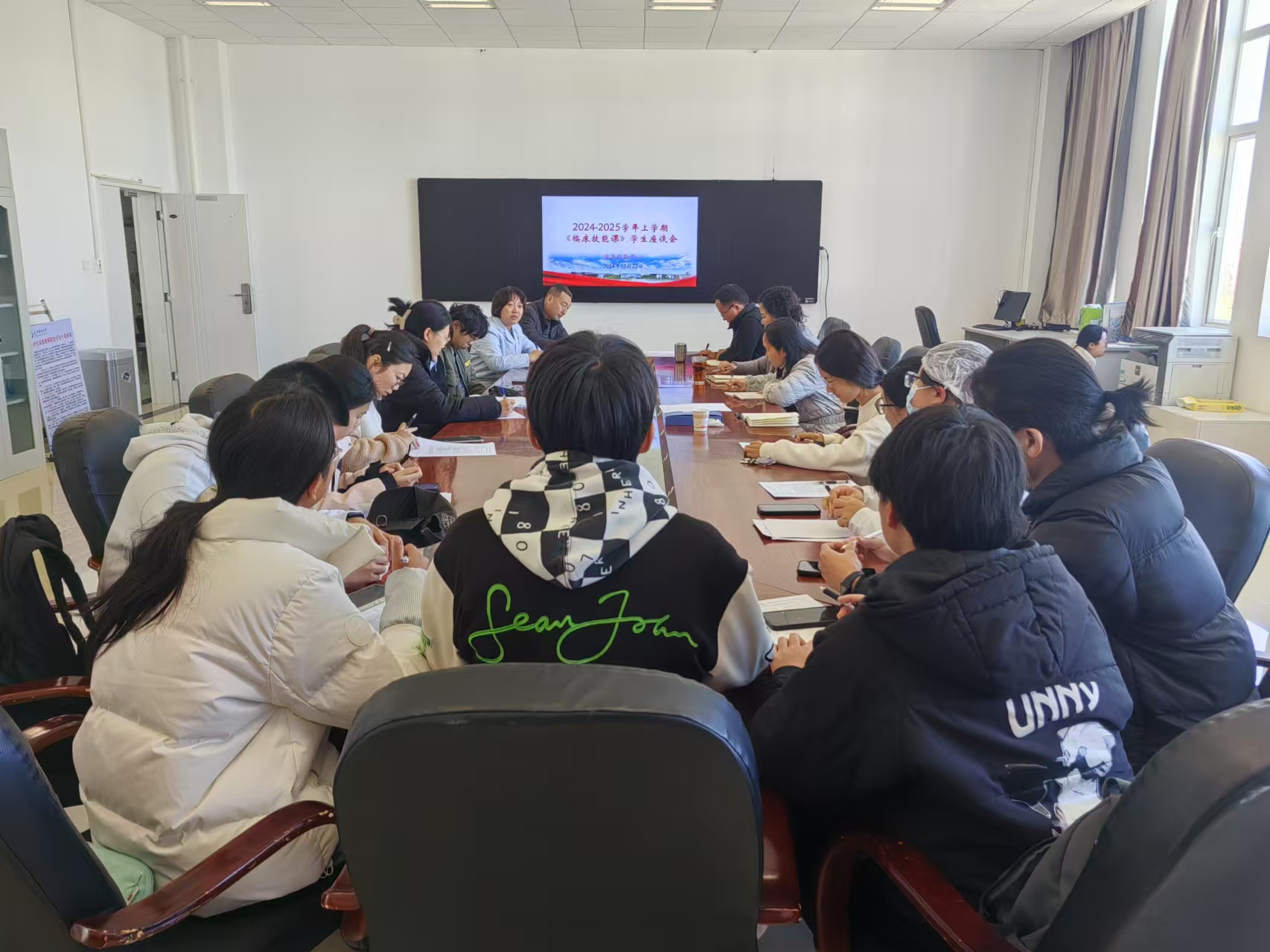 为深入了解学生对《临床技能课》的学习情况与反馈,进一步优化课程设置与教学方法,临床技能中心于12月23日召开2024-2025学年上学期《临床技能课》学生座谈会。中心党政领导、内外科教研室主任、教学秘书及2022级全科医学、医学影像学,2023级口腔医学各班班委参加了此次座谈会,会议由杨晖副主任主持。