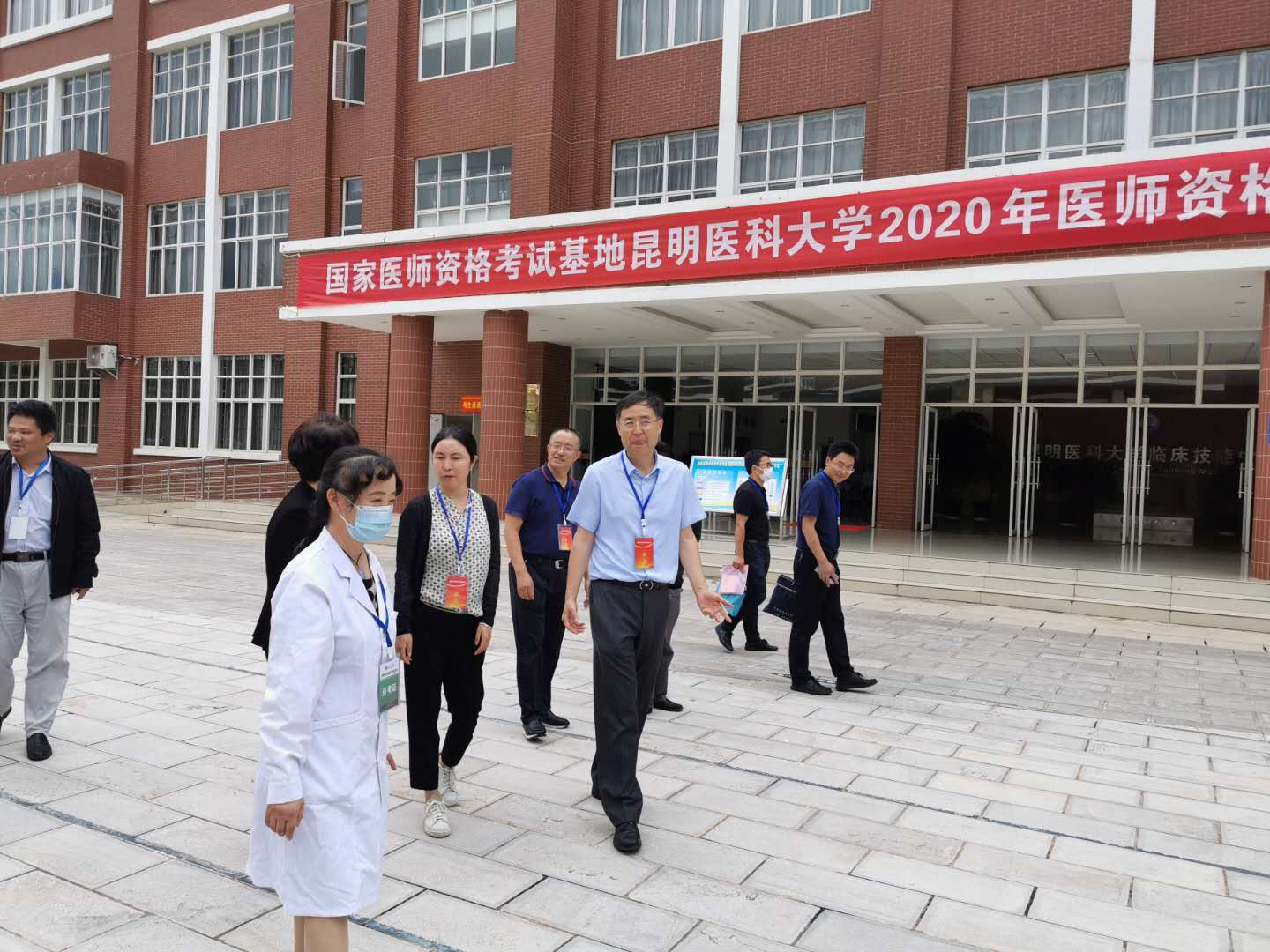 考试期间,云南省卫生健康委员会主任杨洋、副主任姜旭、医政医管局局长黄兴黎,昆明市卫生健康委员会党委书记张云海到校对考试工作进行全面督查并考察了临床技能中心。校长李松和副校长李燕参加督查和考察。杨洋一行对学校执考的组织实施和疫情防控工作给予了充分肯定,高度评价了我中心现代化模拟教育平台建设。