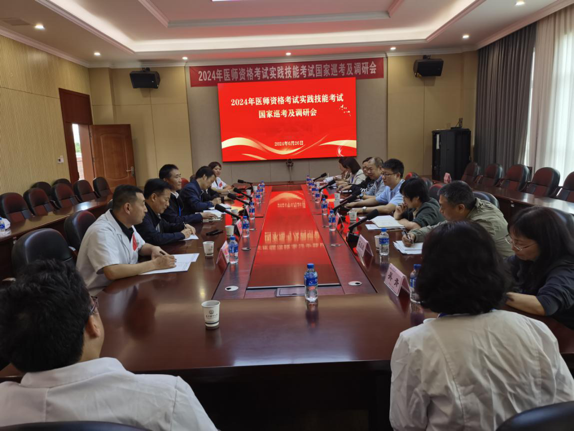 6月26日,基地还接受了国家、省考区、市考点联合巡考调研工作组的巡考及调研,学校党委常委、副校长李利华,教务处处长王金德、副处长陈有华,临床技能中心负责人及考务人员代表、考官代表等全程参加了巡考及座谈会。