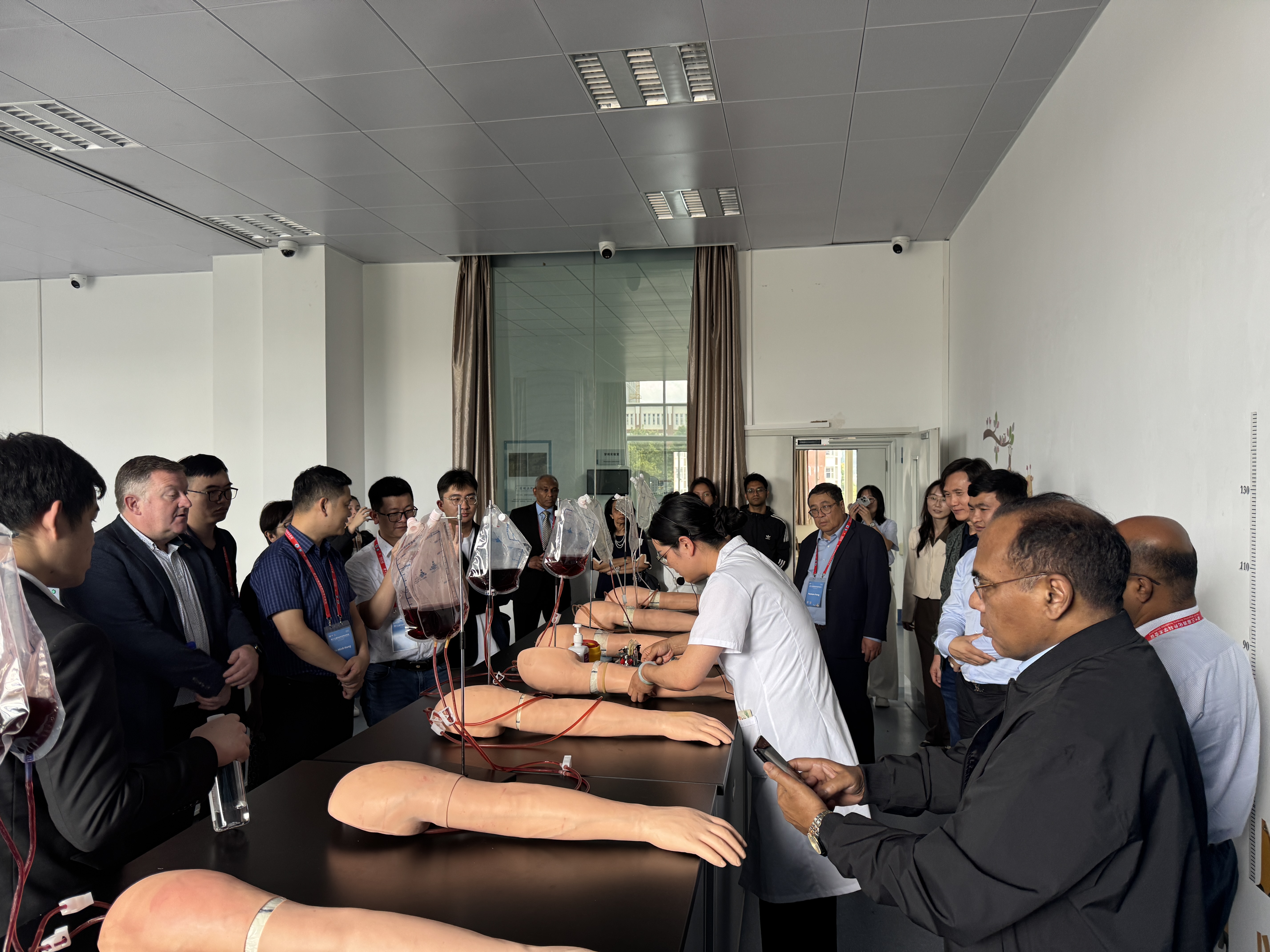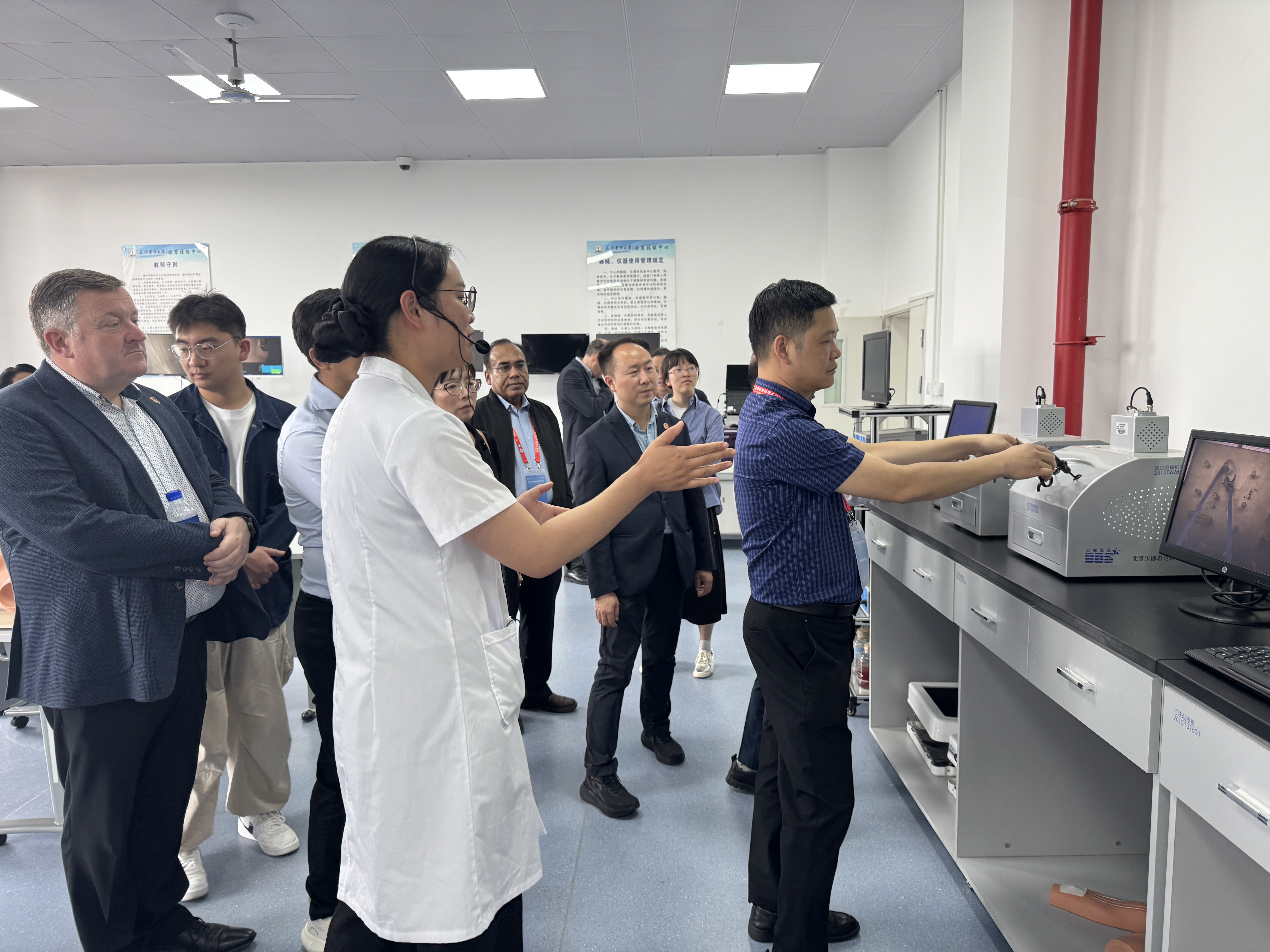 7月4日下午,第十三届消化外科学术会议外国专家一行20余人在职能部门的陪同下到临床技能中心参观交流。