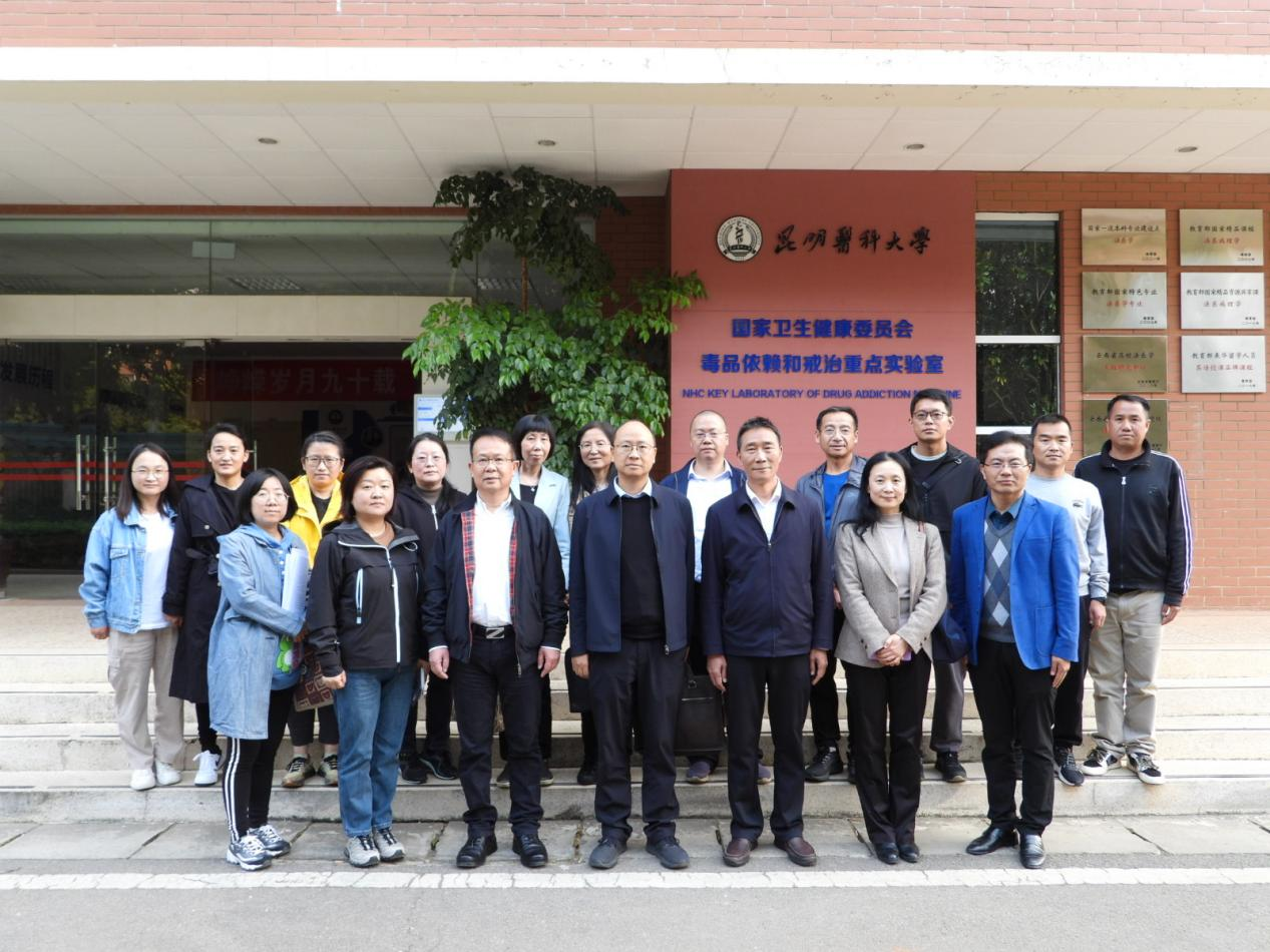 2024年3月20日下午,云南省卫生健康委员会党组成员、副主任、保健局局长何梦煌,科教处副处长王玉霞等一行3人到学校调研国家卫生健康委毒品依赖和戒治重点实验室工作。