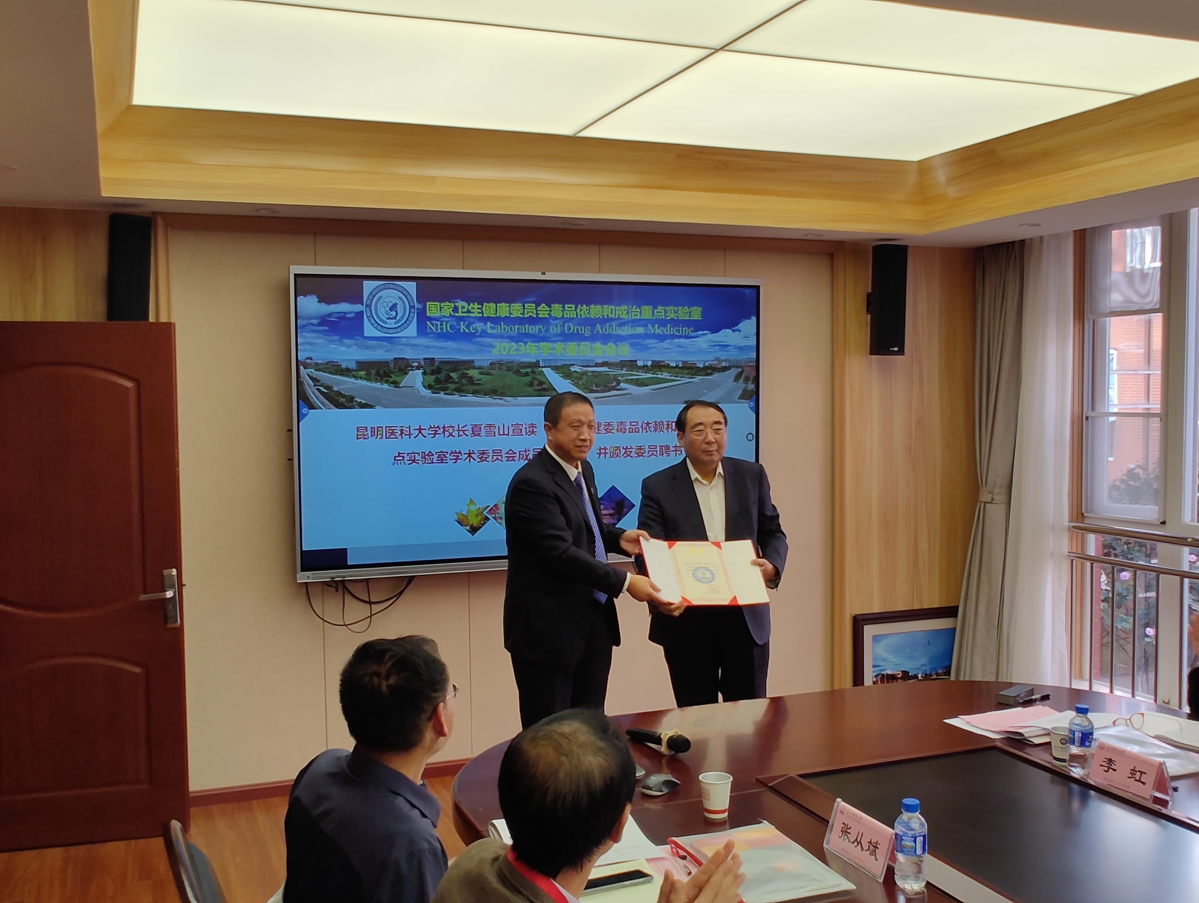 夏雪山指出毒品问题既关系到公共安全,也关系到人民生命健康。云南特殊的时空环境,导致毒品及毒品相关问题尤为突出,已成为制约云南高质量跨越式发展的因素之一。米兰milan官方网站在毒品依赖与戒治领域有一定的基础,并具有显著的区域特色,在此基础上2019年获批立项建设国家卫生健康委重点实验室。经过4年的建设,取得一定的成效,但也还有需要进一步提升的空间。此次召开由丛斌院士领衔的学术委员会会议,由衷希望各位委员对重点实验室的建设发展进行问诊把脉,指明方向,为把实验室建设成为特色明显,区域领先的国家部委实验室建言献策。夏雪山同时为各位委员颁发了聘书。