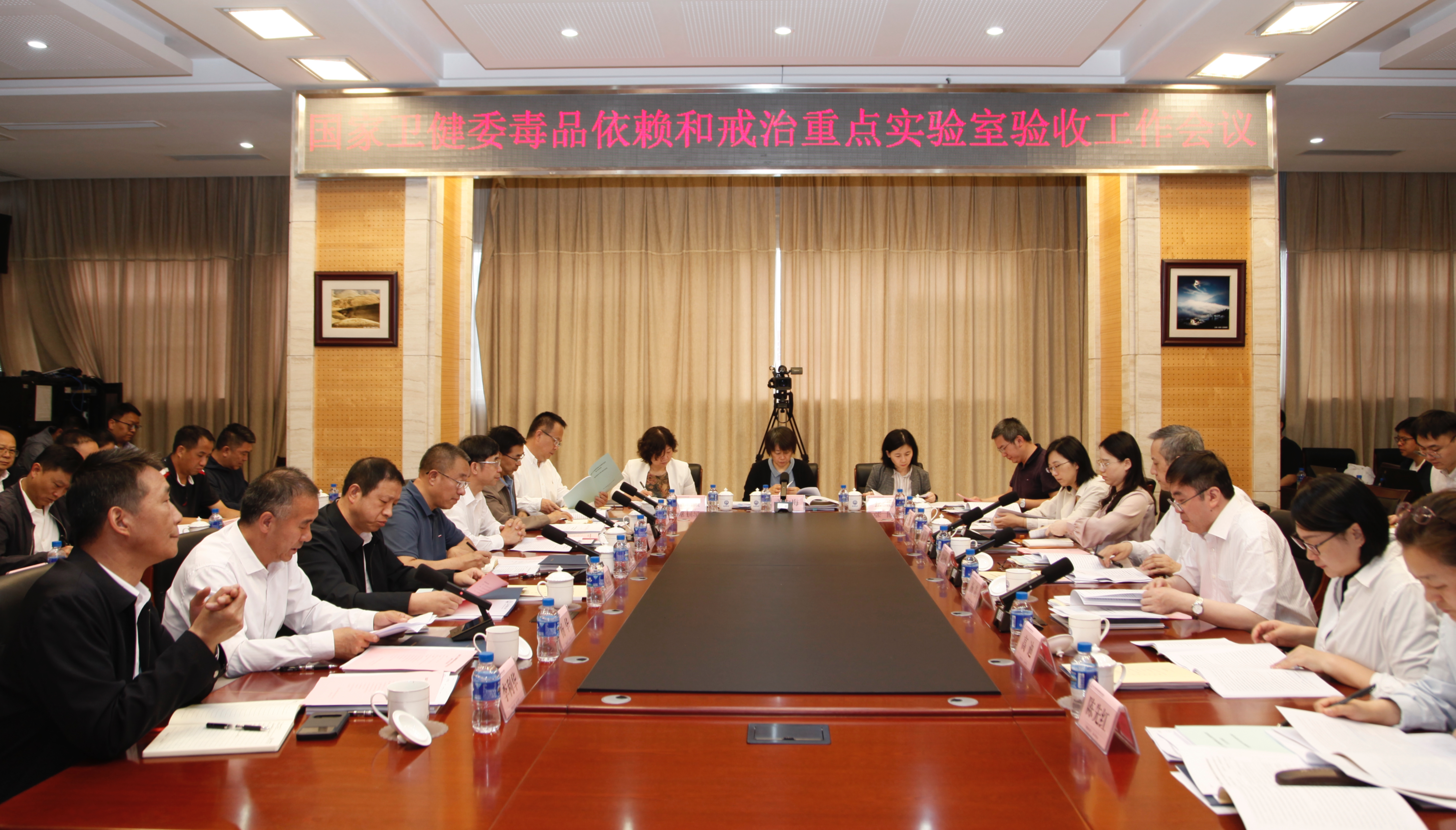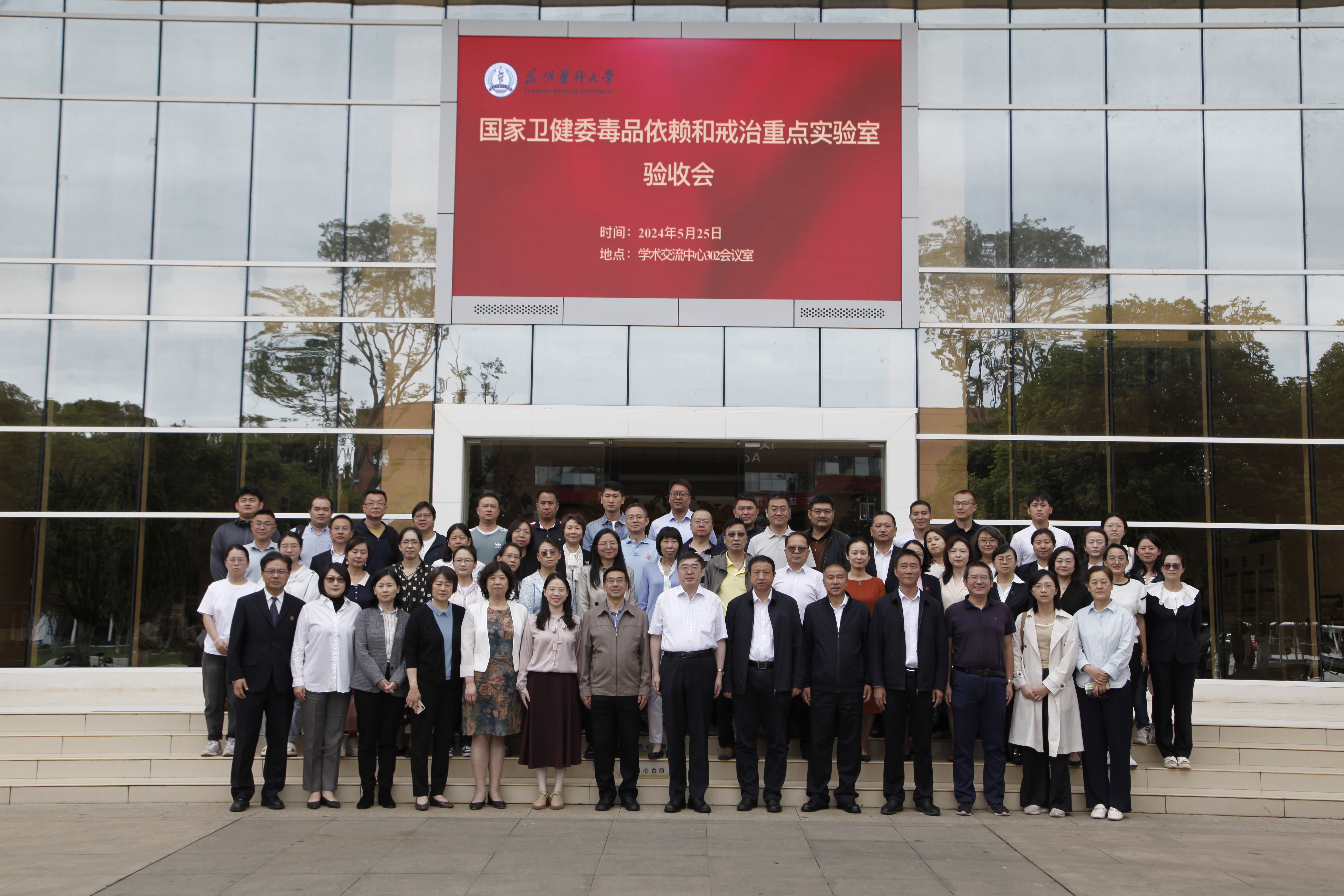 5月25日,国家卫生健康委员会组织专家对毒品依赖和戒治重点实验室(委省共建)进行现场验收。国家卫生健康委员会科教司监察专员刘登峰率专家组、工作组一行13人开展现场验收工作。云南省卫生健康委员会党组书记、主任姜旭,云南省戒毒管理局局长杨华,米兰milan官方网站党委书记尹向阳、校长夏雪山、副校长李利华、副校长陆地,云南省卫生健康委员会科教处、米兰milan官方网站相关部门和学院负责人,云南省药物依赖防治研究所、昆明市强制隔离戒毒所等合作单位负责人,重点实验室研究方向负责人和骨干成员等参加验收会议。国家卫生健康委员会科教司规划评估处四级调研员施韵主持验收会。