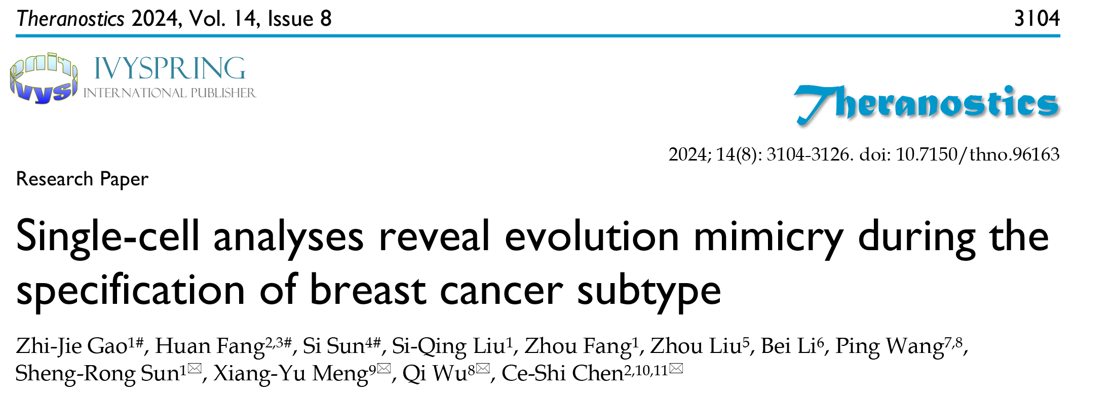 乳腺癌是全球最主要的公共卫生问题之一,严重影响着人类健康和生活质量。乳腺癌异质性是影响疾病发生发展、治疗响应和肿瘤复发的关键因素。肿瘤细胞的性质和特征往往特异性地继承其起源的干细胞或祖细胞。这些干细胞或祖细胞的遗传和表观遗传程序,通过赋予细胞发育可塑性和特定的细胞特征,促进了肿瘤细胞的多样性。基于转录组学的PAM50分子分型可以将乳腺癌分成luminal A型、luminal B型、HER2+型、Basal-like和Normal-like等五种亚型。尽管PAM50分子分型一定程度上反映了不同亚型乳腺癌的肿瘤起源差异,但考虑到bulk测序技术的混杂性,从bulk转录组分析中得到的基因标签并不能总是准确地反映肿瘤的真实内在亚型和相关表型。因此,利用更加先进的单细胞转录组技术,将乳腺癌在细胞层面进行溯源并进一步解析乳腺癌异质性,是一项至关重要的工作。
