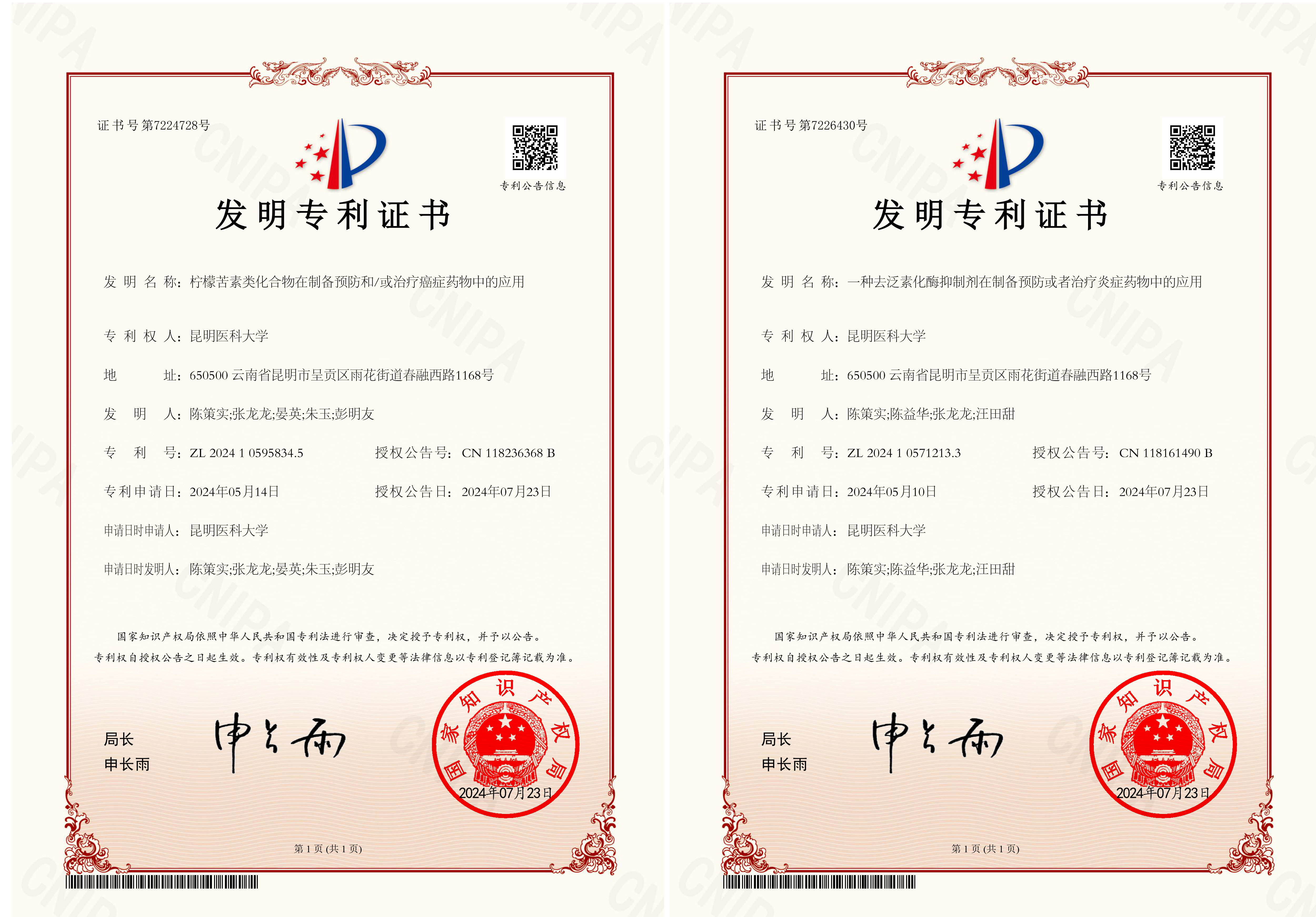 以上2个发明专利经昆明市知识产权保护中心预审后,通过快速通道在75天内先后获得国家知识产权局授权。