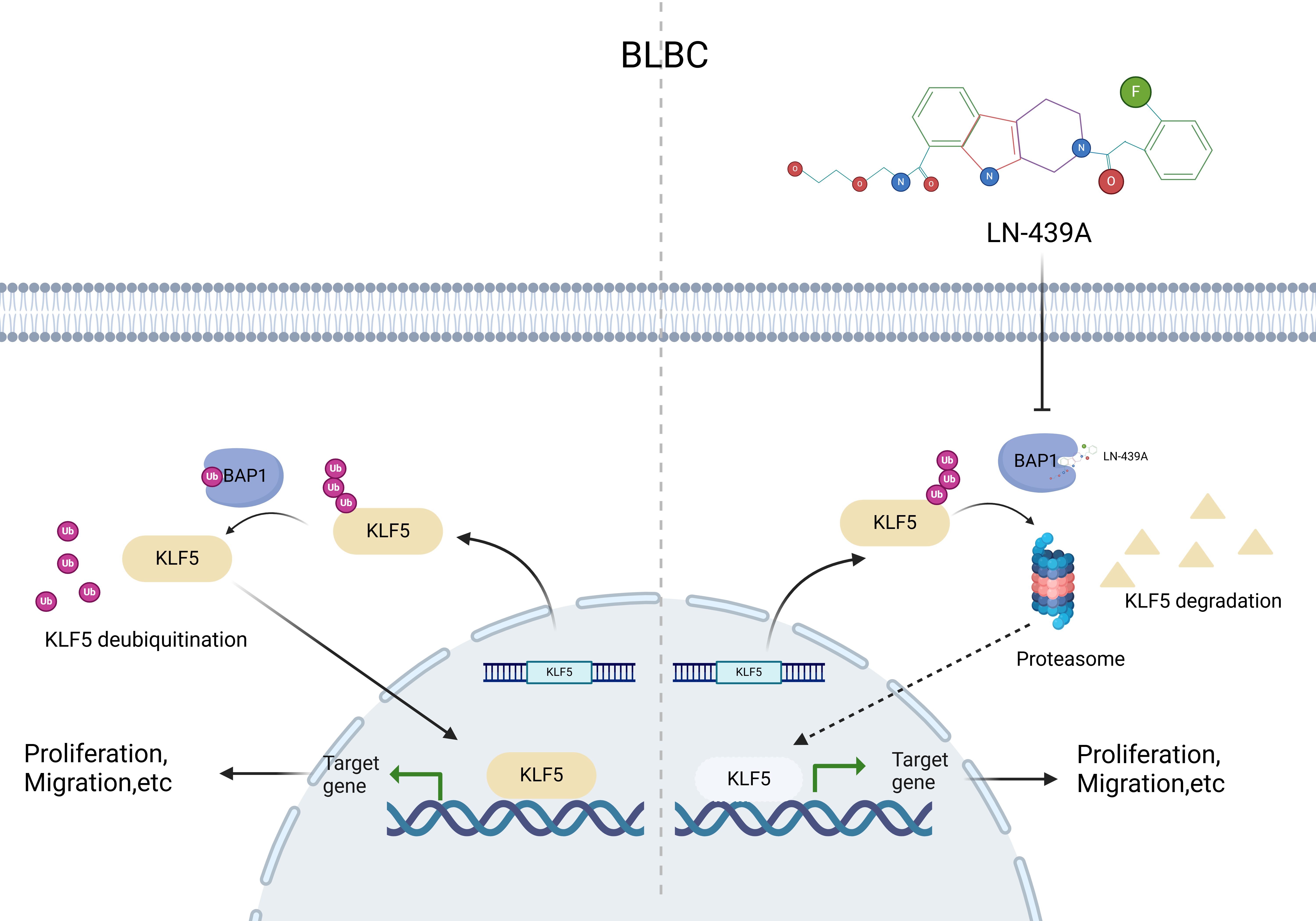 2024年10月8日,该研究成果以“ LN-439A, a Novel BAP1 Inhibitor, Suppresses the Growth of Basal-like Breast Cancer by Degrading KLF5”为题在线发表在Acta Pharmacologica Sinica杂志上。中国科学技术大学硕士研究生汪田甜、米兰milan官方网站生物医学工程研究院副研究员张龙龙和李富兵是该论文的共同第一作者。米兰milan官方网站生物医学工程研究院陈策实研究员、现代生物医药产业学院陈益华教授以及米兰milan官方网站第一附属医院王春艳教授为该论文的共同通讯作者。该工作得到了国家重点研发计划、国家自然科学基金、云南省重大科技专项、云南省各类科学基金等项目的资助。