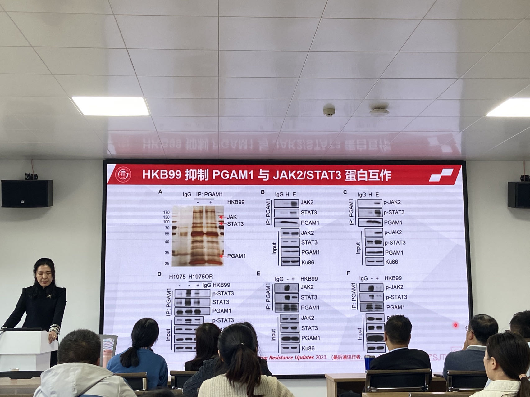 沈瑛教授以“靶向代谢抗肿瘤药物药理学研究”为题,介绍了课题组近期在靶向肿瘤代谢的药物研发进展。沈教授介绍到,代谢重编程对肿瘤进展具有重要的意义,因此代谢靶向干预是肿瘤治疗的新策略,但是代谢酶具有多功能性和代谢异质性,使得研究靶向肿瘤代谢的抗肿瘤药物非常困难。沈教授课题组聚焦肿瘤代谢重编程的研究,阐明了PAST1、AKR1B1和PGAM1调控肺癌耐药和转移的新机制,并研发出了靶向PGAM1的新型变构抑制剂HKB99,该抑制剂可以通过变构抑制PGAM1与ACTA2蛋白的互作,抑制肺癌的生长和转移,相关研究成果发表在高水平期刊上,获得了专利授权和成果转化。