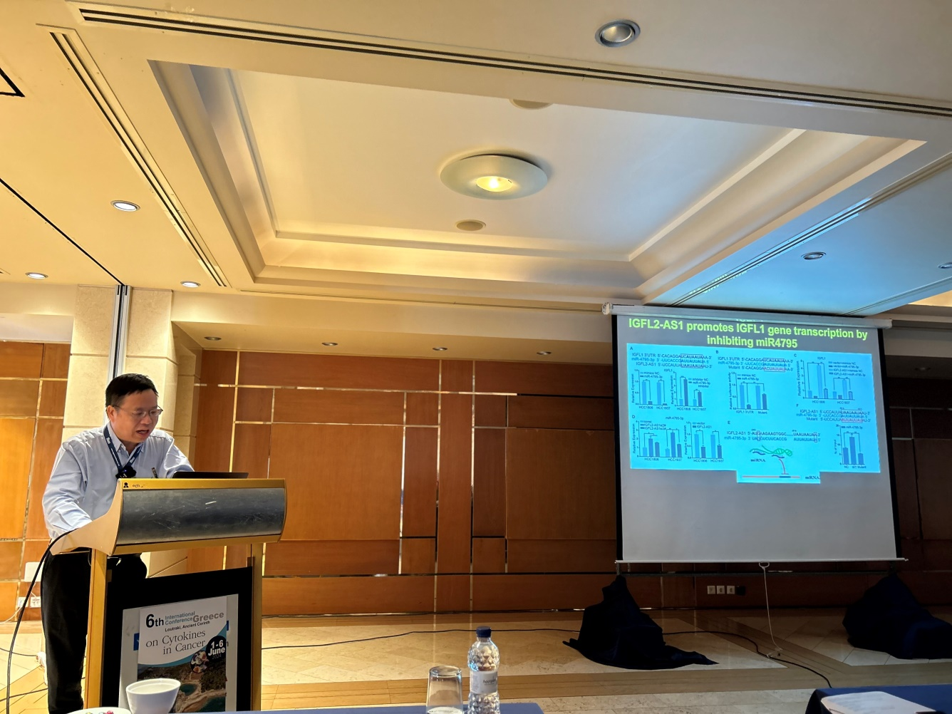 第六届癌症细胞因子国际会议是肿瘤研究领域的高水平国际会议,吸引了来自全球的100余名知名专家,大会聚焦癌症中的细胞因子,特别是干扰素信号通路和下游的STAT信号通路。陈策实院长在大会上做了题为“KLF5 transcription factor promotes breast cancer through multiple cytokines”的学术报告,分享了团队关于KLF5转录因子上调细胞因子IFGL1促进乳腺癌干性的最新研究成果,并提出了治疗新策略,获得了与会专家的高度评价。