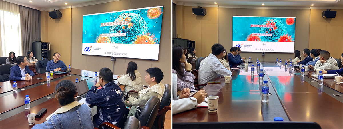 2024年11月4日上午,新加坡基因组研究院于强教授应陈策实院长邀请,为我院师生开展学术讲座,吸引了60余名师生参加。