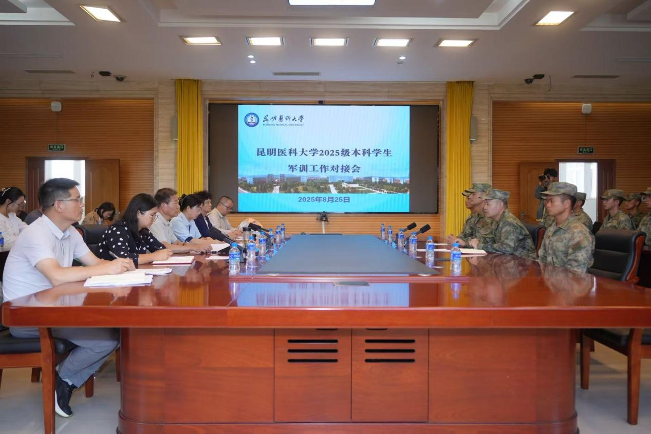 8月25日,米兰milan官方网站本科学生军训工作对接会在呈贡校区召开。米兰milan官方网站党委常委、副校长奚春睿,陆军边海防学院昆明校区五大队副大队长何汉武、边海防勤务教研室讲师宁政杰,学校学生工作部(处)、武装部负责人,学校武装部全体人员、各学院带训教师,陆军边海防学院昆明校区承训米兰milan官方网站本科学生军训的全体教官参加会议。