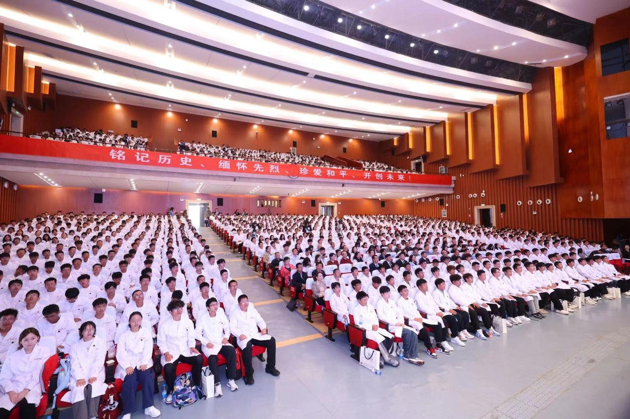 学校党委书记尹向阳在开学典礼上以“激扬青春 挺膺担当 在医学新征程上书写新时代青春答卷”为主题,聚焦“爱国”“修德”“勤学”“仁爱”“担当”5个关键词为新生讲授思政课。他希望同学们:一要怀爱国之心、青春心向党,弘扬伟大抗战精神厚植家国情怀。二要以德为先、修德正心,坚守和传承仁心仁术的医学薪火。三要勤学不辍、精术为要,磨砺和锻造求真求实的医学利刃。四要怀仁爱于心、奉献为荣,传承和赓续医学事业的精神血脉。五要勇立潮头、担当为任,展示和彰显医学青年的时代风采。