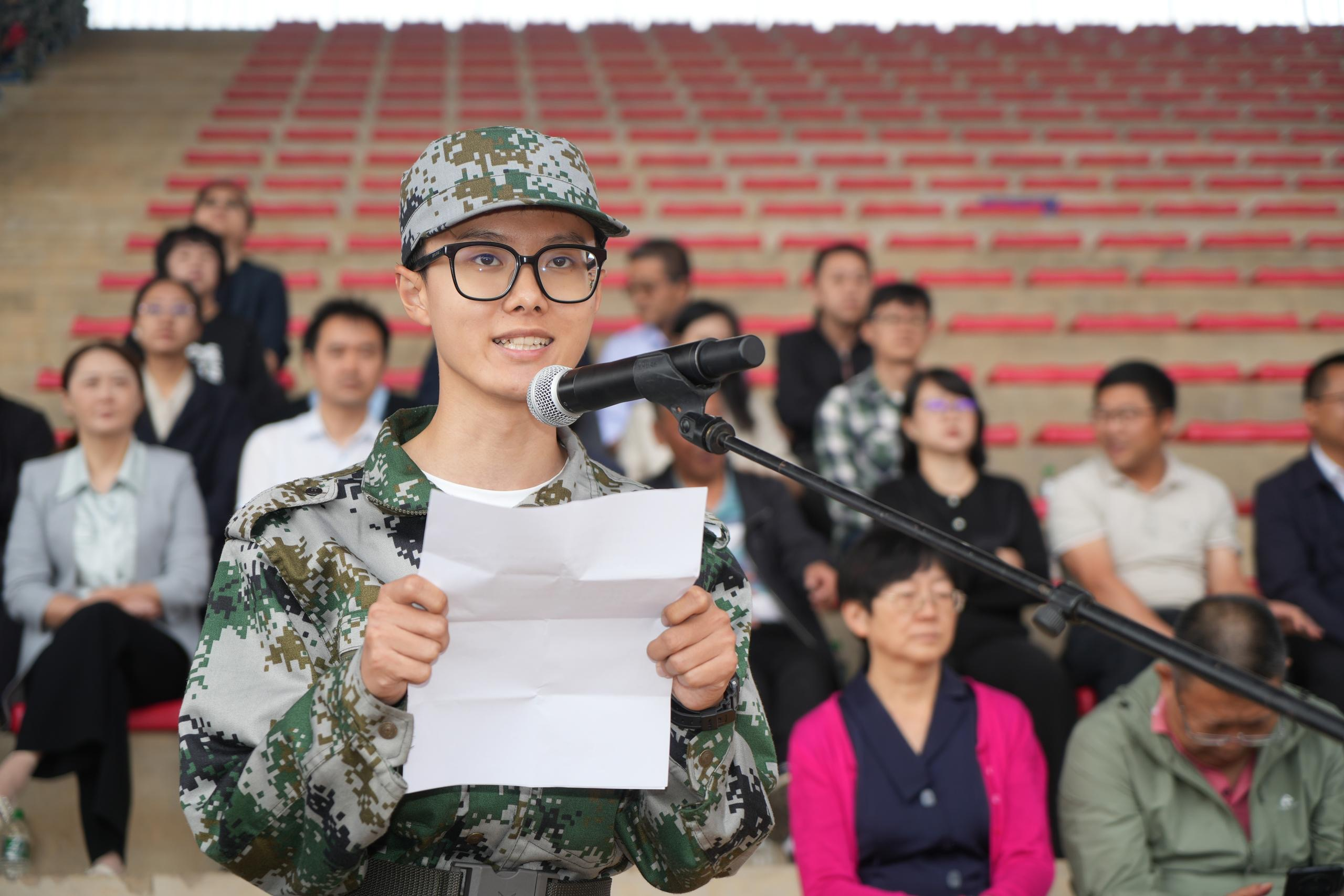 校党委书记尹向阳在大会上讲话,对参训同学提出3点希望:一是希望同学们弘扬伟大抗战精神,凝聚青春奋进力量;二是希望同学们传承红色基因,激发勤奋学习动力;三是希望同学们发扬优良作风,胸怀梦想挺膺担当。他勉励同学们要自觉树立国家意识、民族意识、责任意识,护佑生命、服务社会、报效国家,将青春“小我”融入理想“大我”。在今后的学习生活中要继续保持军训中不畏艰难、顽强奋斗的意志品质,发扬军训中团结协作、拼搏进取的道德风尚,要珍惜学习时光,尽快转变角色,适应大学生活,深耕医学专业,不断探索医学的博大精深,在攻坚克难、勇攀医学高峰中锻造硬核本领,为人民的健康保驾护航。