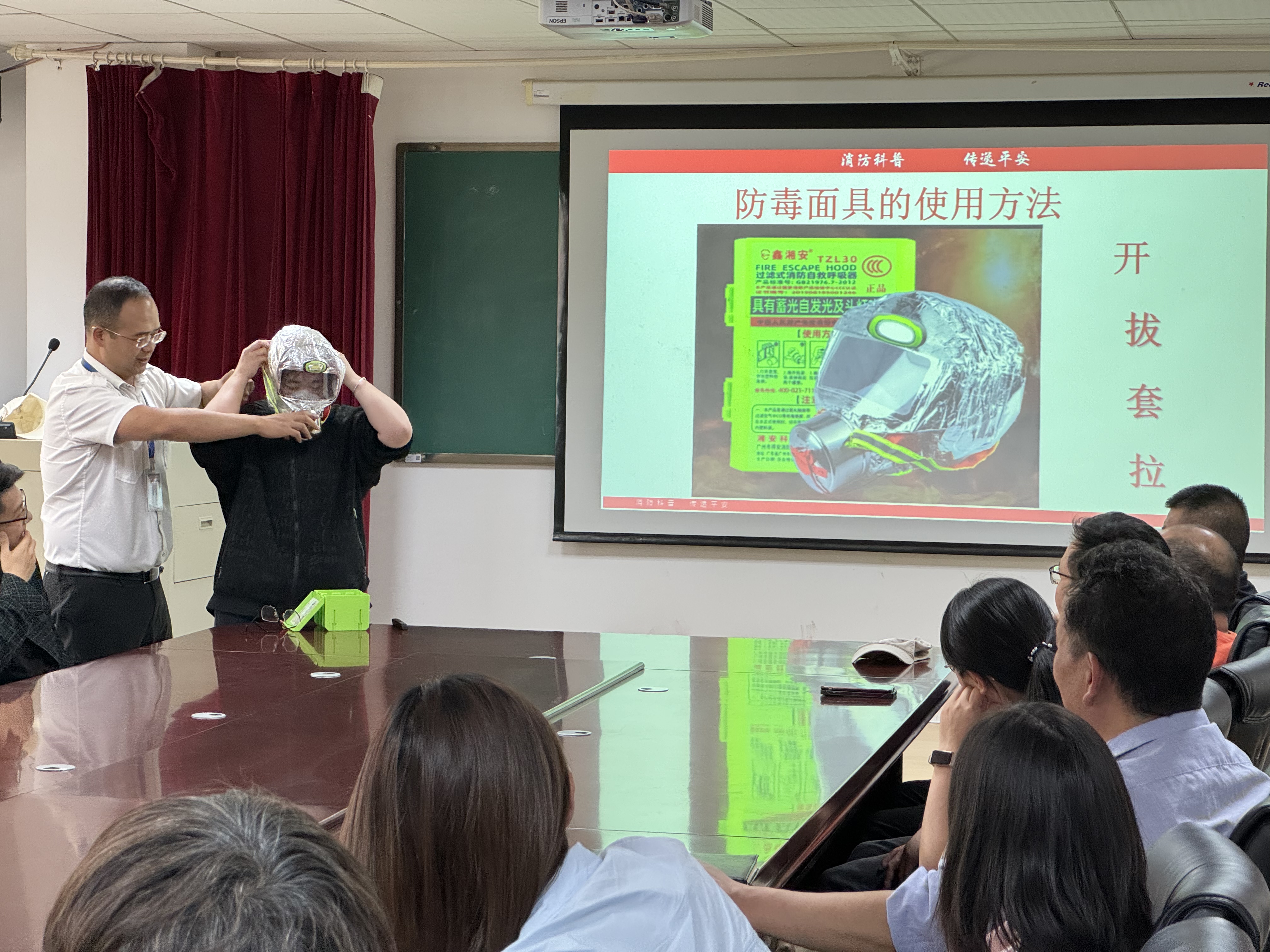 保卫处郭其伟科长传达了学校保卫处对校园消防安全工作的重视和安全防范要求。消防安全专业培训机构高鑫老师由浅入深,给师生详细的介绍了“2023年度消防安全案例”,告诫师生时刻牢记消防安全四个能力“检查消除火灾隐患能力;扑救初期火灾能力;组织人员疏散逃生能力和消防宣传教育培训能力”,掌握消防安全知识一懂三会“懂本场所火灾危险性,会报警,会灭火,会逃生”。培训现场还对常用灭火器、防烟面罩的使用进行讲解示范。