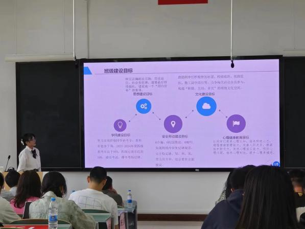 成果汇报中,各班班长就2023—2024学年班级班风学风建设情况进行主题鲜明、内容详实的现场汇报交流,内容包括班级建设目的意义、主要做法、实际成效、经验启示、经费使用等,并现场回答评委提问。