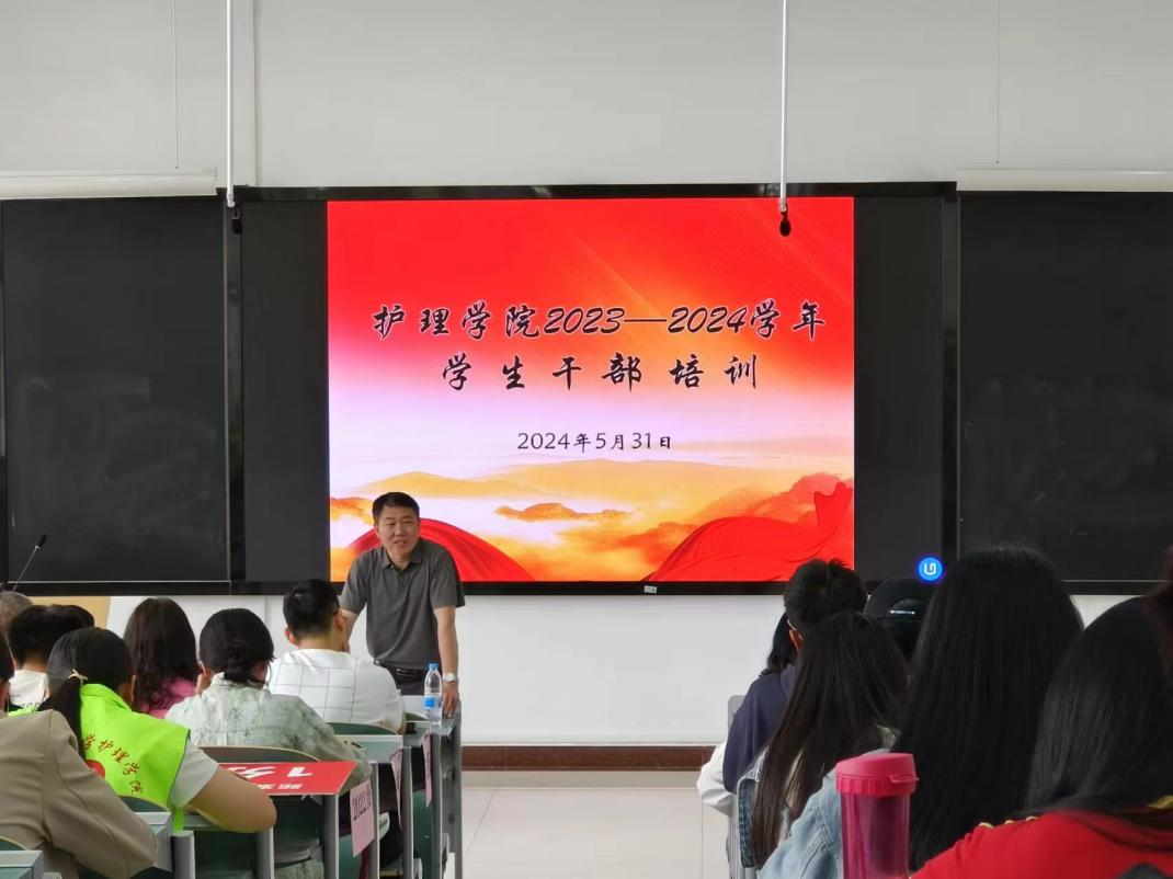 护理学院党委副书记聂兆祥在活动总结暨学生干部培训中,对各班级的建设成果给予充分肯定,也明确指出班级建设中存在的不足,对接下来的班级建设工作提出五点要求:一是要提高站位,定位清楚;二是要勇于开拓,促进发展;三是要举措有效,突出成效;四是要荣辱与共,勇争先进;五要底线意识,确保安全。