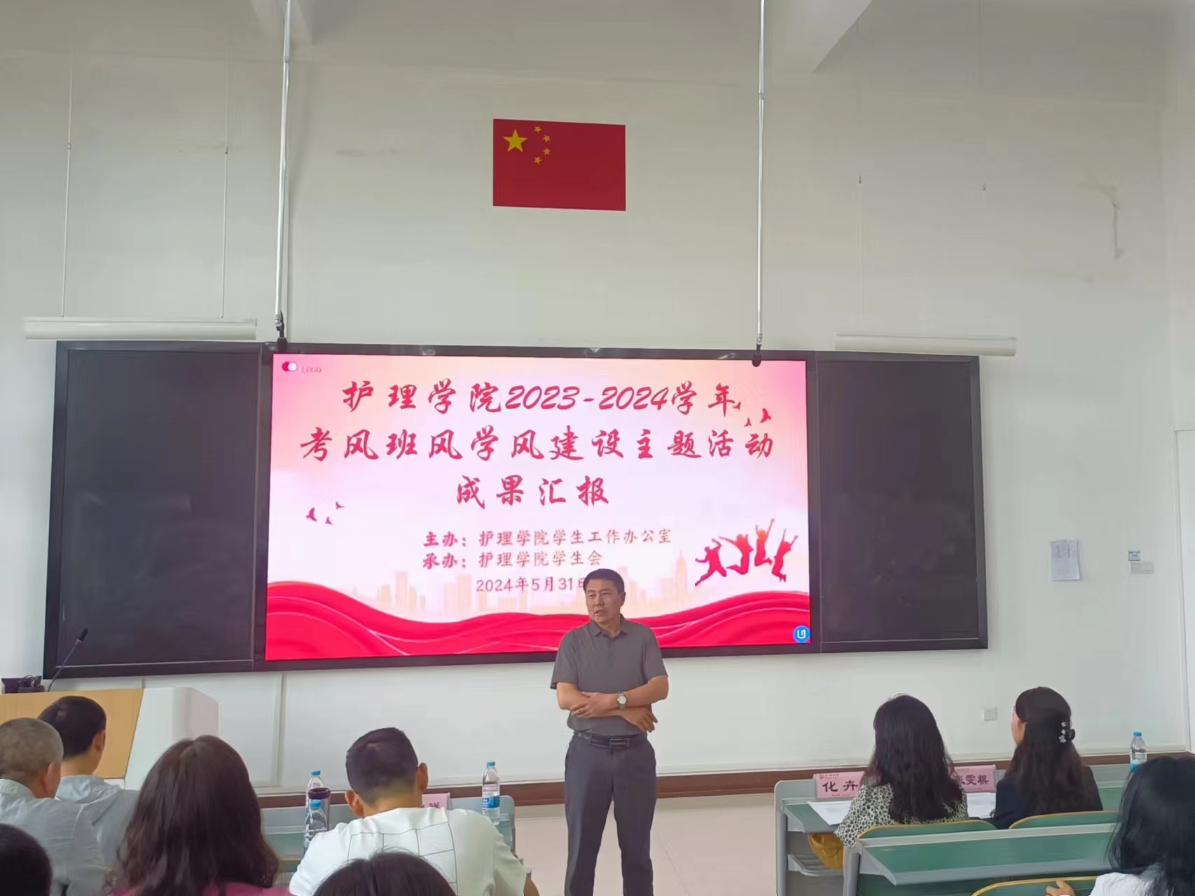 2024年5月31日下午,护理学院在呈贡校区开展了2023—2024学年班风学风建设系列主题活动成果汇报。护理学院党委副书记聂兆祥、全体辅导员、班主任、各班级学生干部代表参加本次活动。