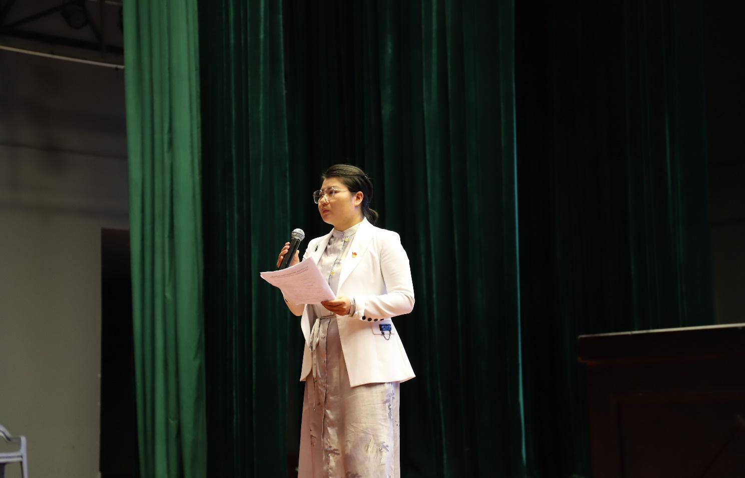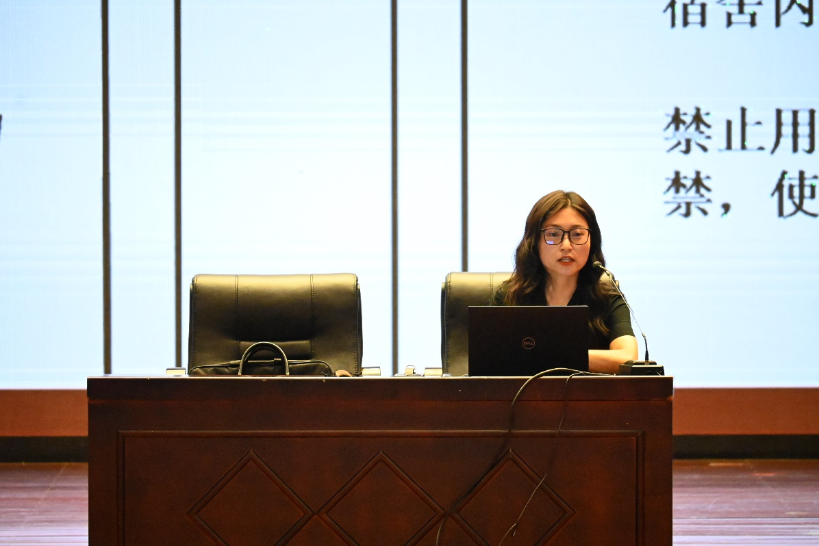 2022级、2023级负责老师首先上台总结,他们分别对两个年级过去一年的工作情况进行了分析,从年级整体挂科率、四六级过级率、校园活动参加情况等具体分析了2023—2024学年存在的问题,并建议同学们新学年早规划、重行动,为一年后面对就业、考研、保研等系列重要选择与机遇做好充分准备。