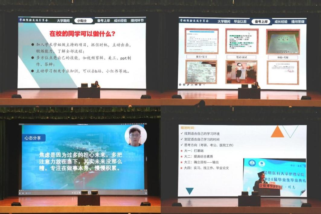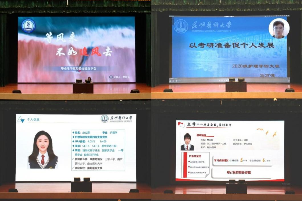 新学期新气象,为鼓励同学们对未来早规划、早行动,护理学院邀请了优秀学生代表马万德、赵立薪、樊雨虹、罗宗云上台发言,分享升学、就业经验。护理学院第四党支部党员赵立薪,现被保送至南方医科大学,就如何获得保研资格向学弟学妹们展开了细致的讲解,使得同学们受益匪浅。樊雨虹同学,从“立身”“立学”“立行”三个方面、学习经验各个方面鼓励同学们要认清自我,努力学习,投身实践。罗宗云,助产学专业2022级学生,分享了自己对于大学生活学习的看法以及日后的人生规划,帮助同学们树立了自己的就业目标。