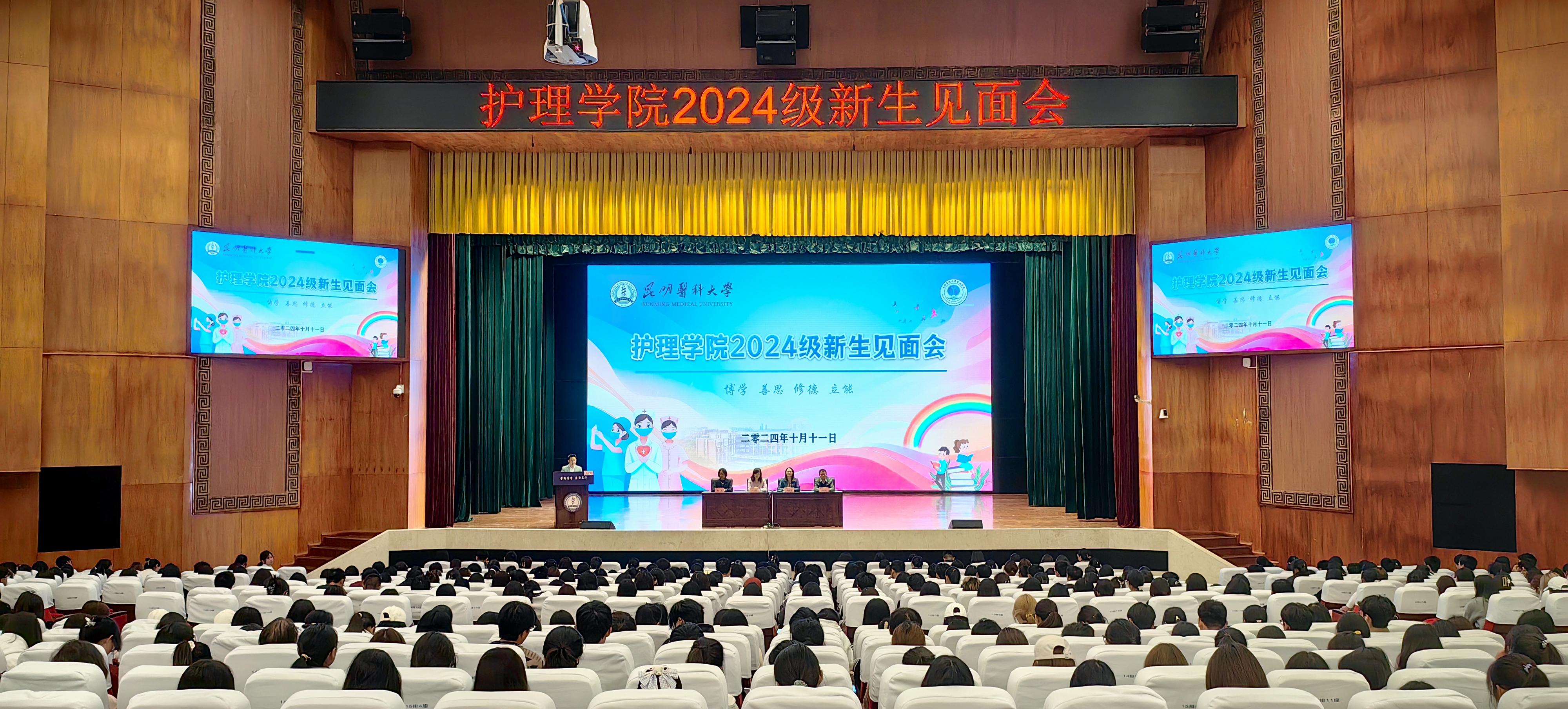2024年10月11日 ,护理学院2024级新生见面会暨入学教育在学生会堂举行。学院党政领导、全体教师,以及2024级新生出席活动,会议由学院党委书记杨国华主持。