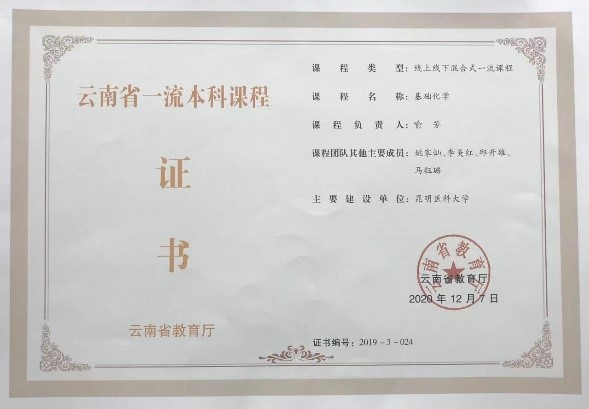 2020年获得云南省教育厅“基础化学”年省级一流课程荣誉;2014年获得米兰milan官方网站“优秀教师”;2012获云红河集团“红云园丁奖”。参与5项教研教改项目(2个厅级,3个校级);发表教研教改论文8篇(通讯1篇,其他7篇)。主持1项(校级),参与2项(校级)。指导本科生“大学生创新项目” 3项。作为本科生导师制导师,共指导本科生16人。