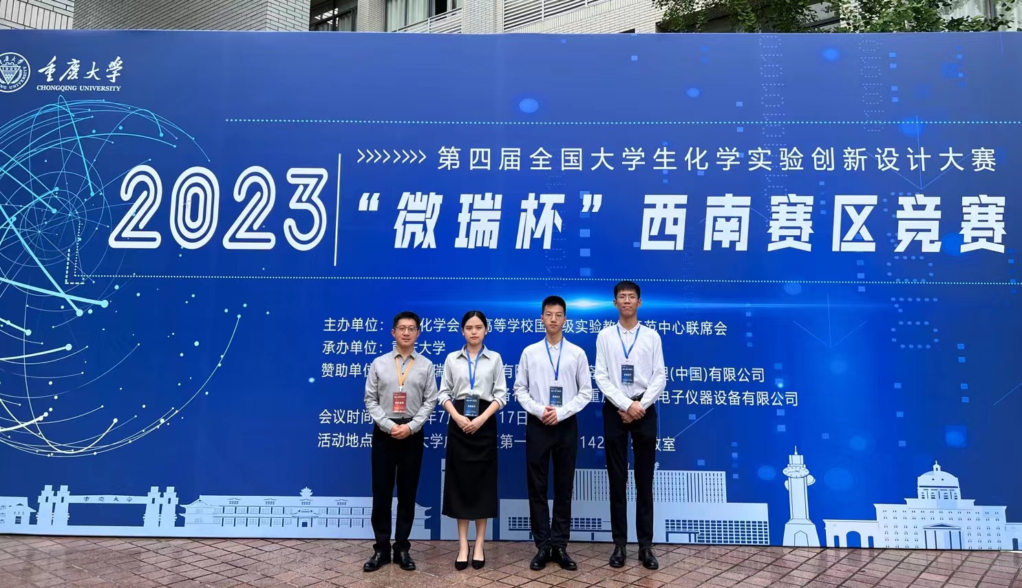 2023年7月15日-16日,第四届全国大学生化学实验创新设计大赛“微瑞杯”西南赛区竞赛在重庆大学虎溪校区圆满落幕。本次竞赛由中国化学会和教育部高等学校国家级实验教学示范中心联席会主办,重庆大学承办。我校药学院选派2022级临床药学专业李炳良、韩玉莹、李典阳三位本科生组队参赛,经过初赛,复赛,附加赛等环节的激烈角逐,最终三位学生的改进实验作品《绿色化学导向的一步法贝诺酯合成工艺研究及其体内动态评价》(指导教师:尚文斌、刘丹丹)斩获西南赛区一等奖。