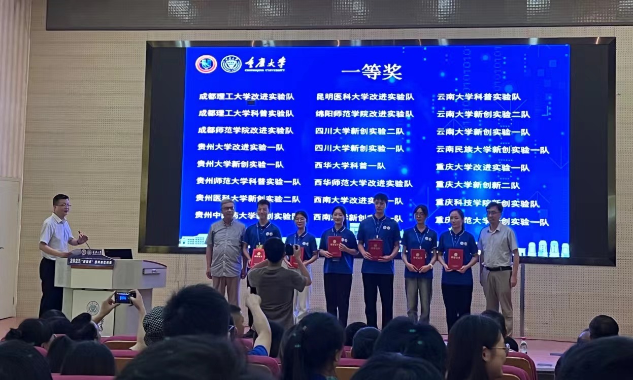 本次比赛共有来自西南五省区市的66所高校共158支队伍参赛,初赛角逐出110支队伍赴重庆大学参加现场复赛。竞赛内容包括新创实验、改进实验(包括教学实验仪器创制或改进)、科普实验三类。竞赛成绩由作品成绩和答辩成绩两部分组成,各占50%。在指导教师辛勤培养和全方位指导下,三位参赛同学刻苦实验,积极备赛,在长达四个月的时间里通力配合,团结协作,出色地完成了实验方案设计与完善、实验项目的实施与改进、论文的撰写与修改、视频的拍摄与剪辑、答辩PPT的制作等工作。复赛中参赛队伍充分利用PPT讲解、现场演示等多种形式进行实验作品展示。评审专家进行提问点评,并从科学性、创新性、可行性、安全性等多维度对参赛作品进行评审。