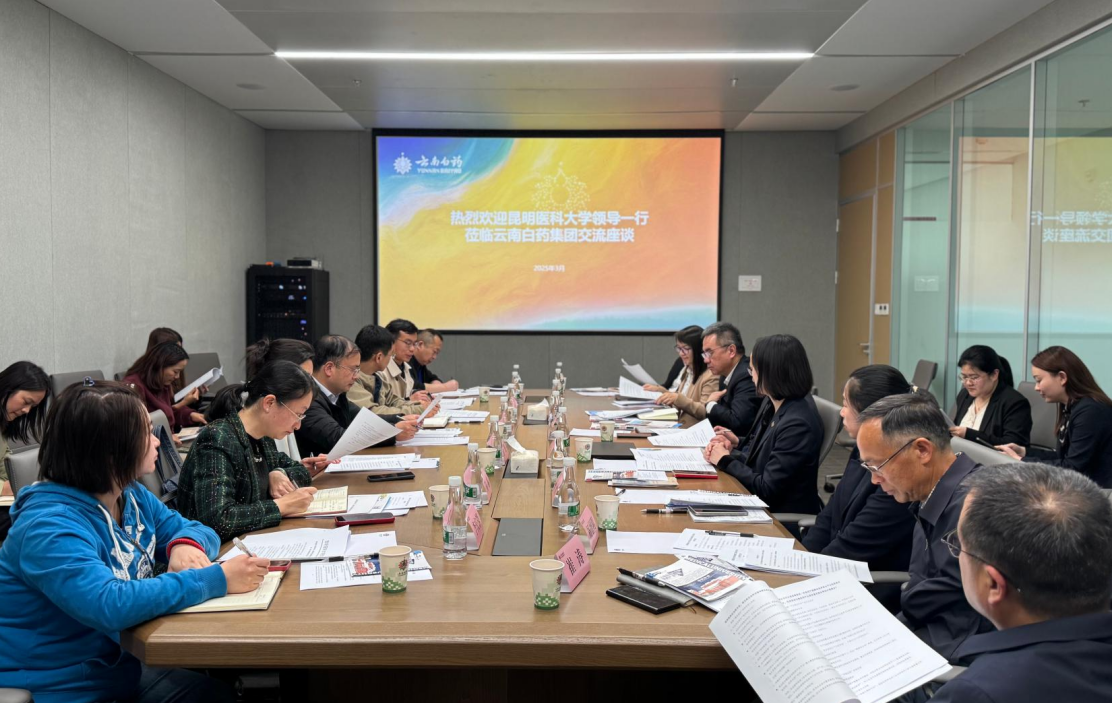 调研团队首先参观了云南白药中央研究院研发大楼,随后双方就人才培养、科研合作、共建联合实验室等议题展开深入交流。张娜表示,当前生物医药企业对制药工程、药学等专业高层次人才需求显著,希望通过校企合作定向培养符合产业需求的应用型人才。郎靖瑜介绍了药学院在国家级一流专业建设、学科平台等方面的优势,提出通过青年教师企业实践、共建实习基地等方式加强产教协同,并对云南白药在学生实习培养中的系统规划给予肯定。座谈会上,双方重点探讨了“2.5+1.5”学制优化方案,彭银强调需制定长期培养规划,通过细化培养目标、完善课程体系及实践教学标准,构建可持续的人才培养机制。陈益华提出将以现代生物医药产业学院为载体,在科研项目联合申报、人才联合培养等方面深化合作,助力云南生物医药产业升级。陆露表示将围绕企业需求优化实践教学模块,推动课程设置与岗位能力深度衔接,同时加强校企联合开发教学案例,提升学生解决实际问题的能力。