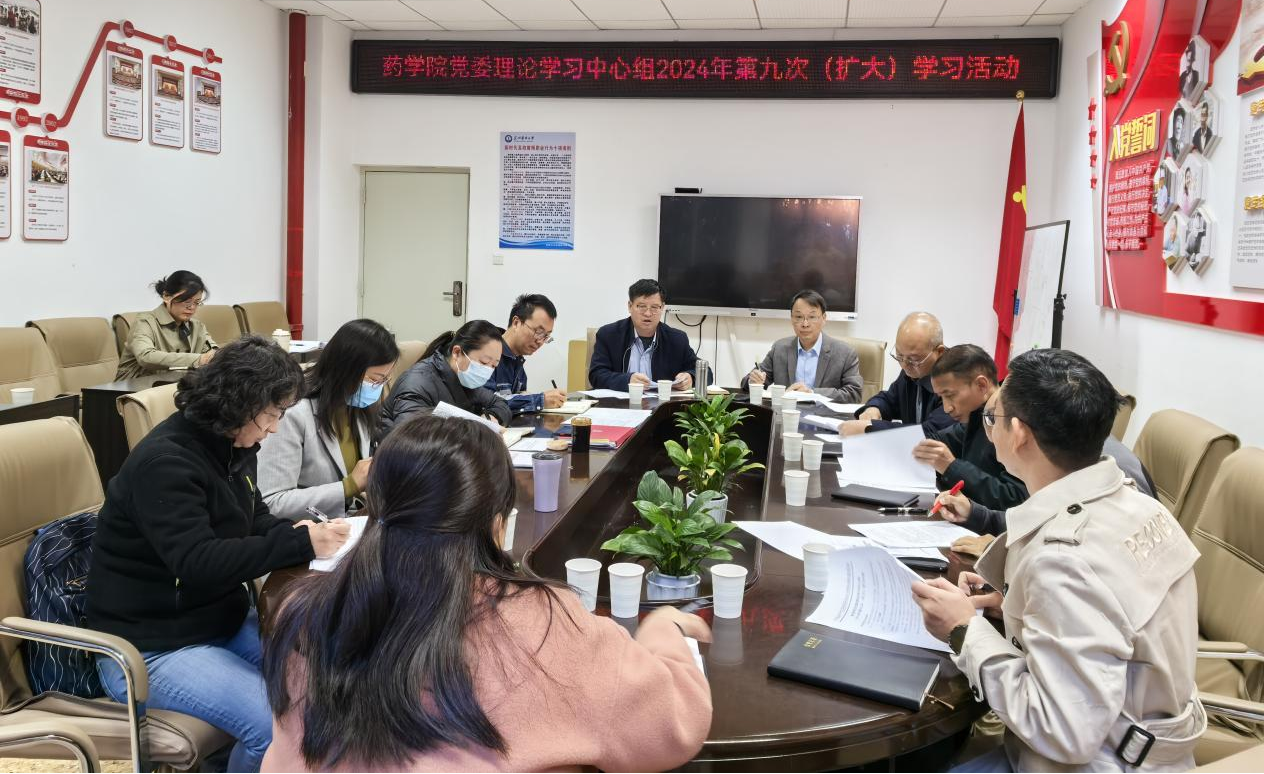 11月18日,药学院党委理论学习中心组2024年第九次(扩大)学习在药学楼103会议室举行。学校党委常委、副校长殷建忠列席指导,康复学院党委书记尹章成、党委副书记张鲁雄列席会议,学院党委委员、非党院领导、工会、团委、各办公室负责人和党支部书记参加本次中心组学习。会议由药学院党委书记张有福主持。