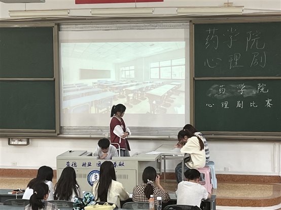 为进一步推进我院心理育人工作,提高同学们心理健康意识,营造热爱生命,感恩生活的良好校园氛围,药学院于4月20日下午在教学楼5104举办了以“聚心凝爱,向阳逐梦”为主题的心理情景剧比赛。本次比赛共有4支队伍参加,药学院辅导员罗梅、王江、徐寒及两名2022级研究生同学担任评委,另有100余名学生观众参加了本次活动。