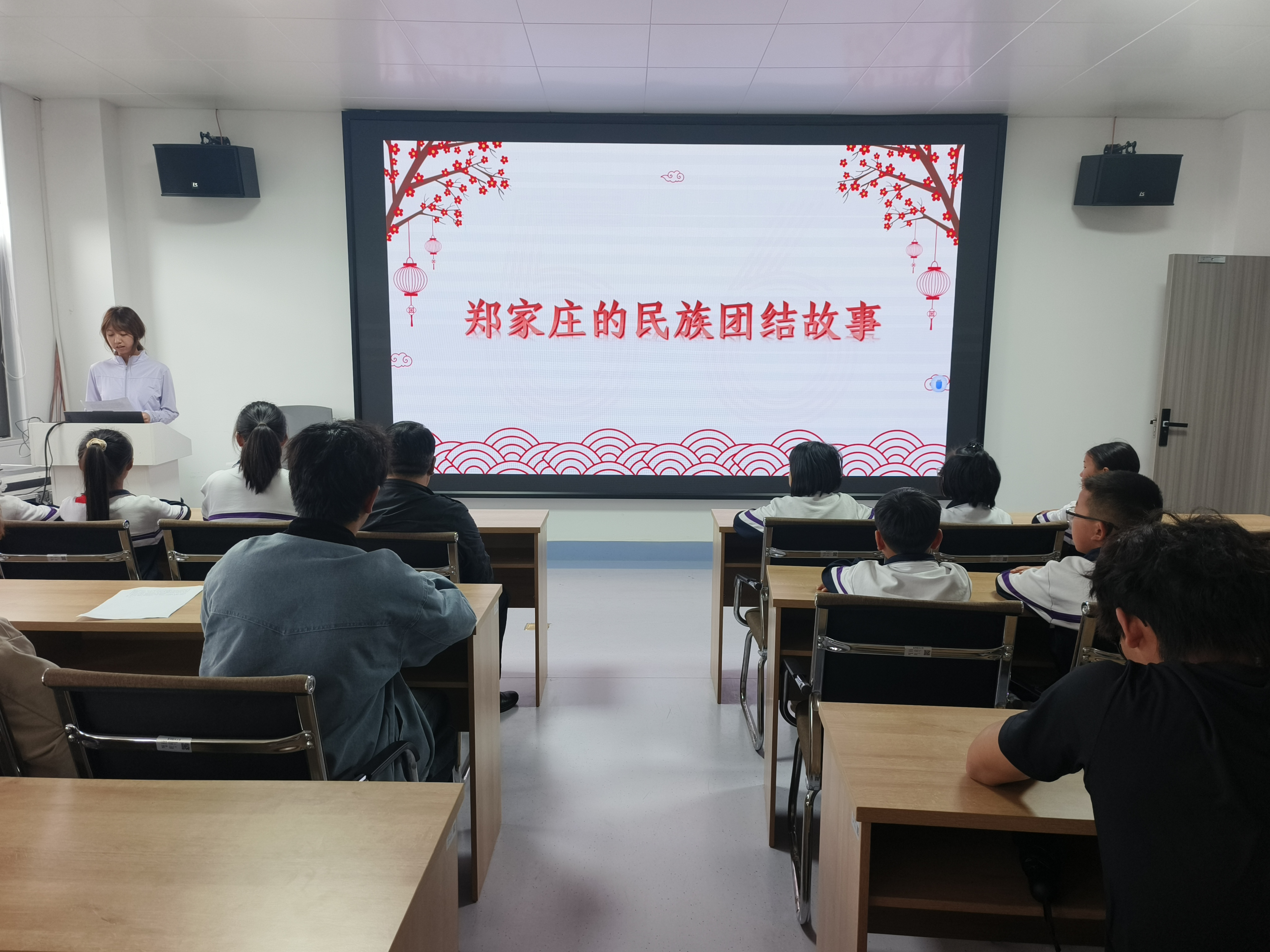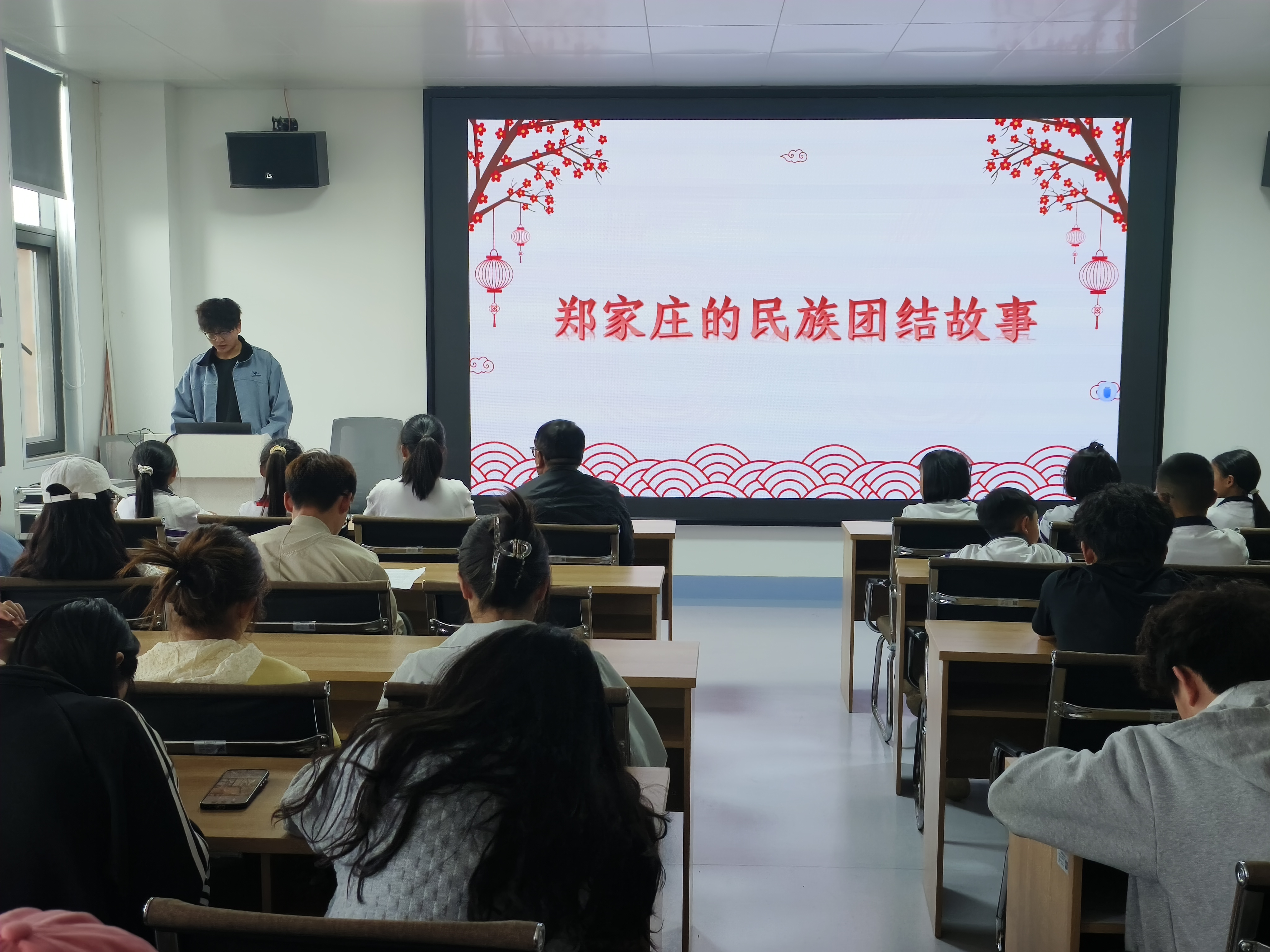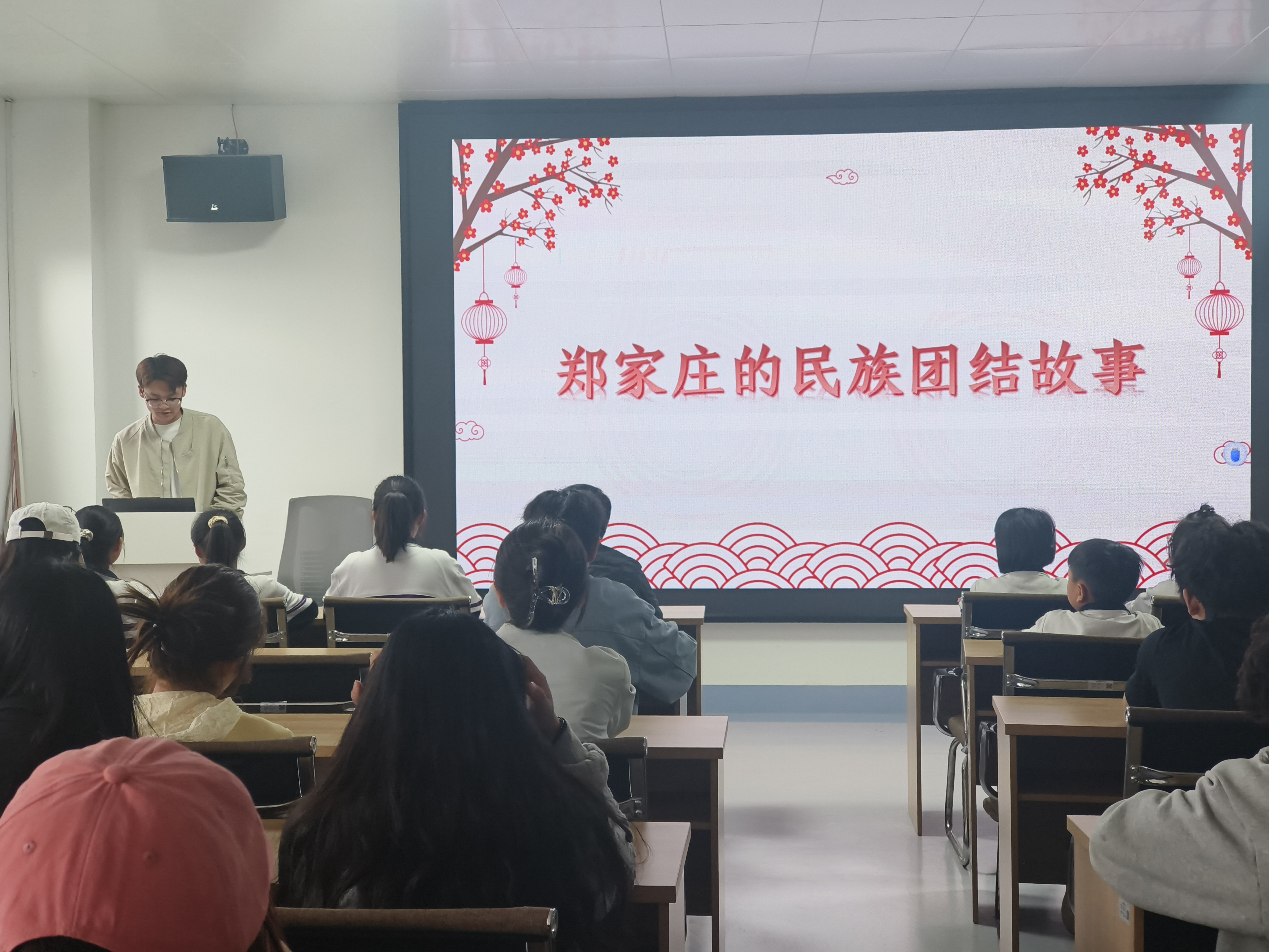 严亚萍以《正确认识和把握中华民族共同体意识》为题,从当前关于民族团结进步教育的相关要求、深入了解民族团结进步教育的重要意义、深入学习领会习近平总书记关于加强和改进民族工作的重要思想、如何开展铸牢中华民族共同体意识教育四个方面进行了讲授。一起观看了同学们剪辑出的视频《郑家庄:七个民族一家亲的幸福密码》。2023级基础医学院临床专业杨秭玥、2023级预防医学李若琴,施铜凯和2024级的李辉泽同学从不同角度分享了参加郑家庄民族团结教育调研工作的体会。通过参加调研活动,同学们铸牢中华民族共同体意识,参加了“我身边的民族团结故事”作品征集比赛,申报了2025年大创项目《医学生铸牢中华民族共同体意识的实践探索》。决心要做好宣传员和传播者,通过主题班会、主题团日活动等给更多的同学讲述郑家庄的民族团结故事,让更多的大学生深化对中华民族发展历史的认识进一步增强对中华民族共同体的归属感和团结意识,进一步形成牢固的中华民族共同体理念。