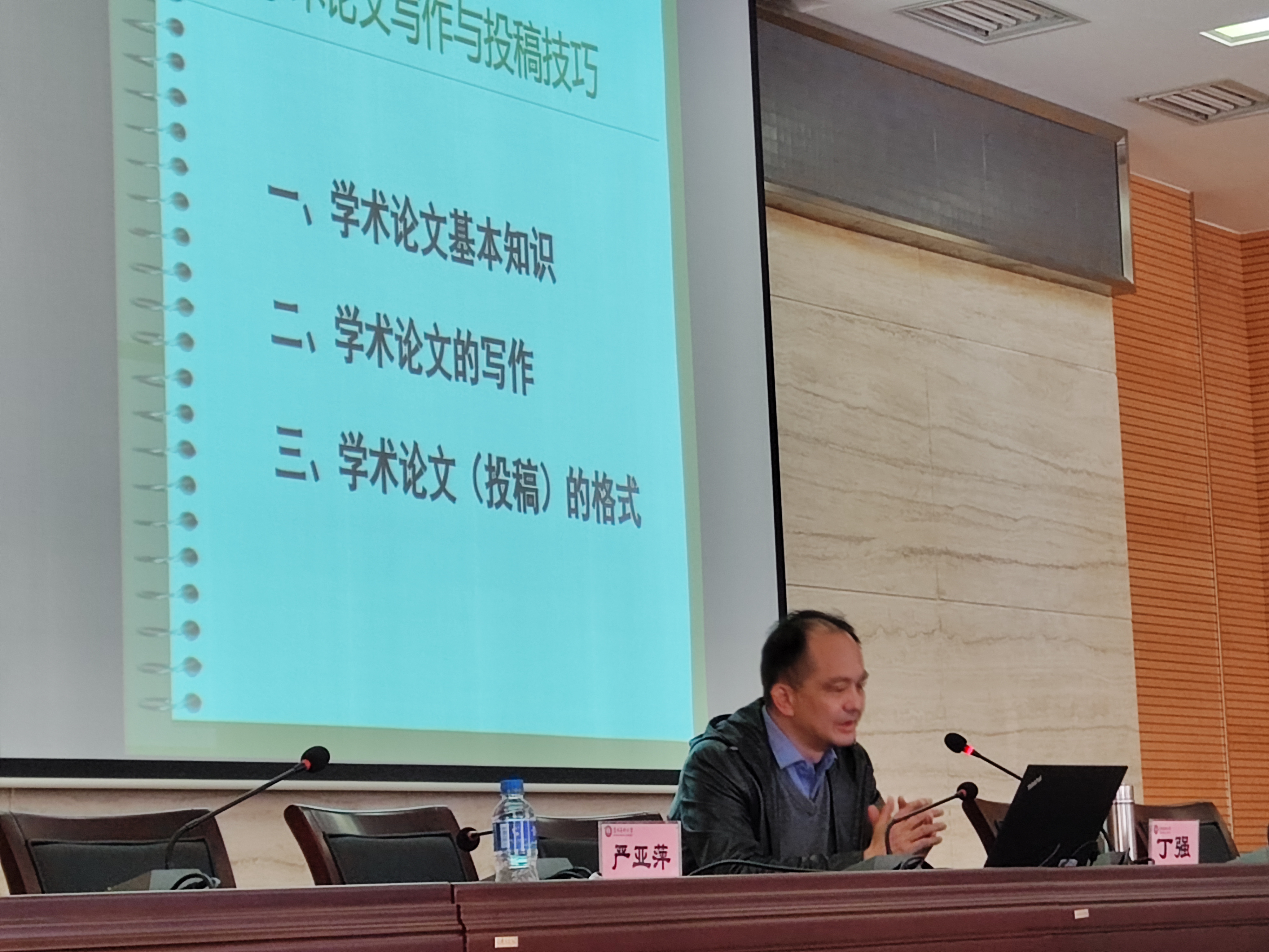 他从学术论文的基本知识、学术论文的写作,学术论文投稿的格式三个方面进行了深入讲解,丁教授的讲授内容丰富、分析精辟、案例生动,实践性和可操作性很强,对于提升师生学术论文写作能力具有很强的指导意义,让师生更加了解论文写作和投稿的技巧,提高论文写作质量和投稿命中率。