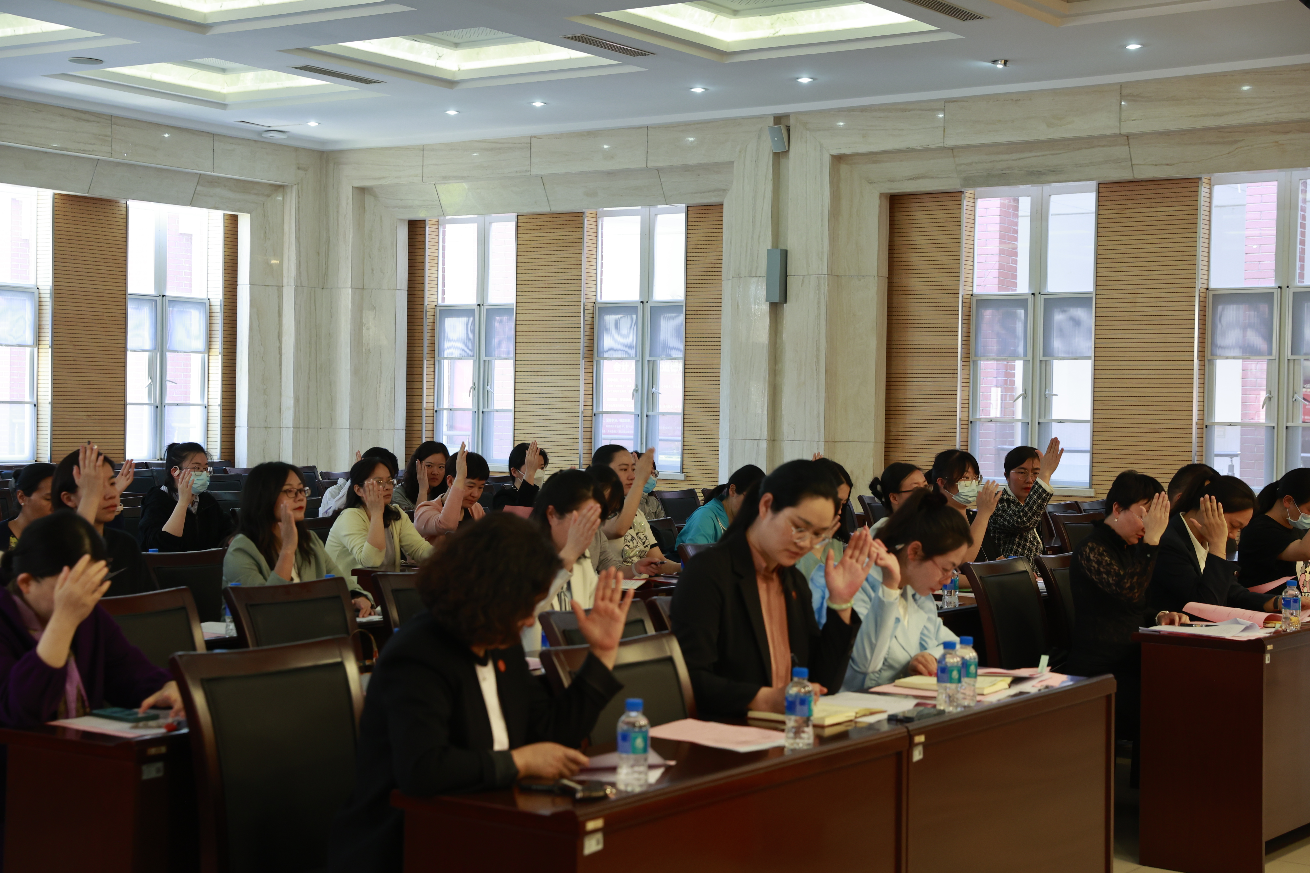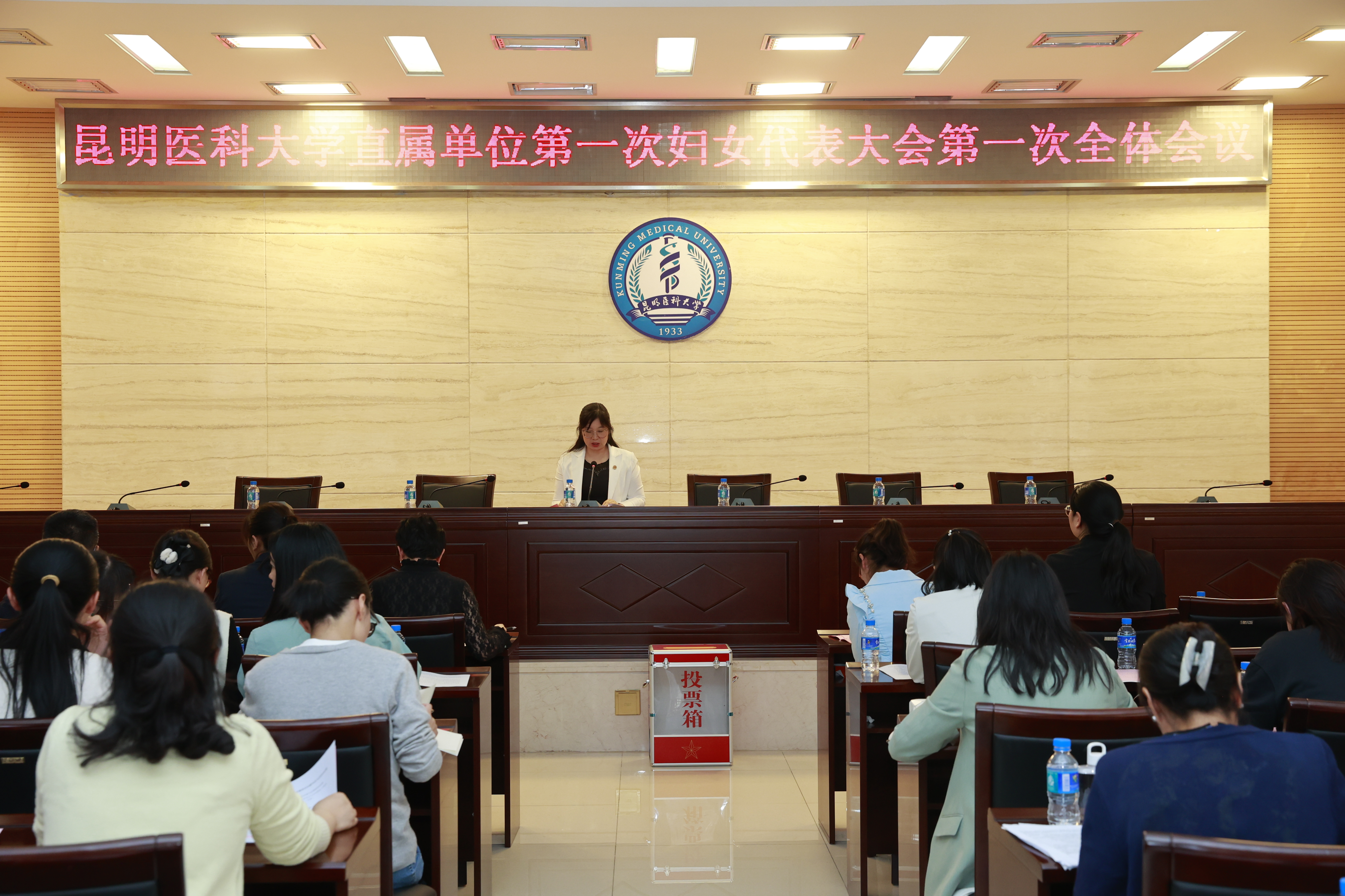 2023年4月11日,直属单位在学术交流中心第二报告厅召开第一次妇女代表大会。直属单位党委委员,女职工和女学生代表41人参加了会议。