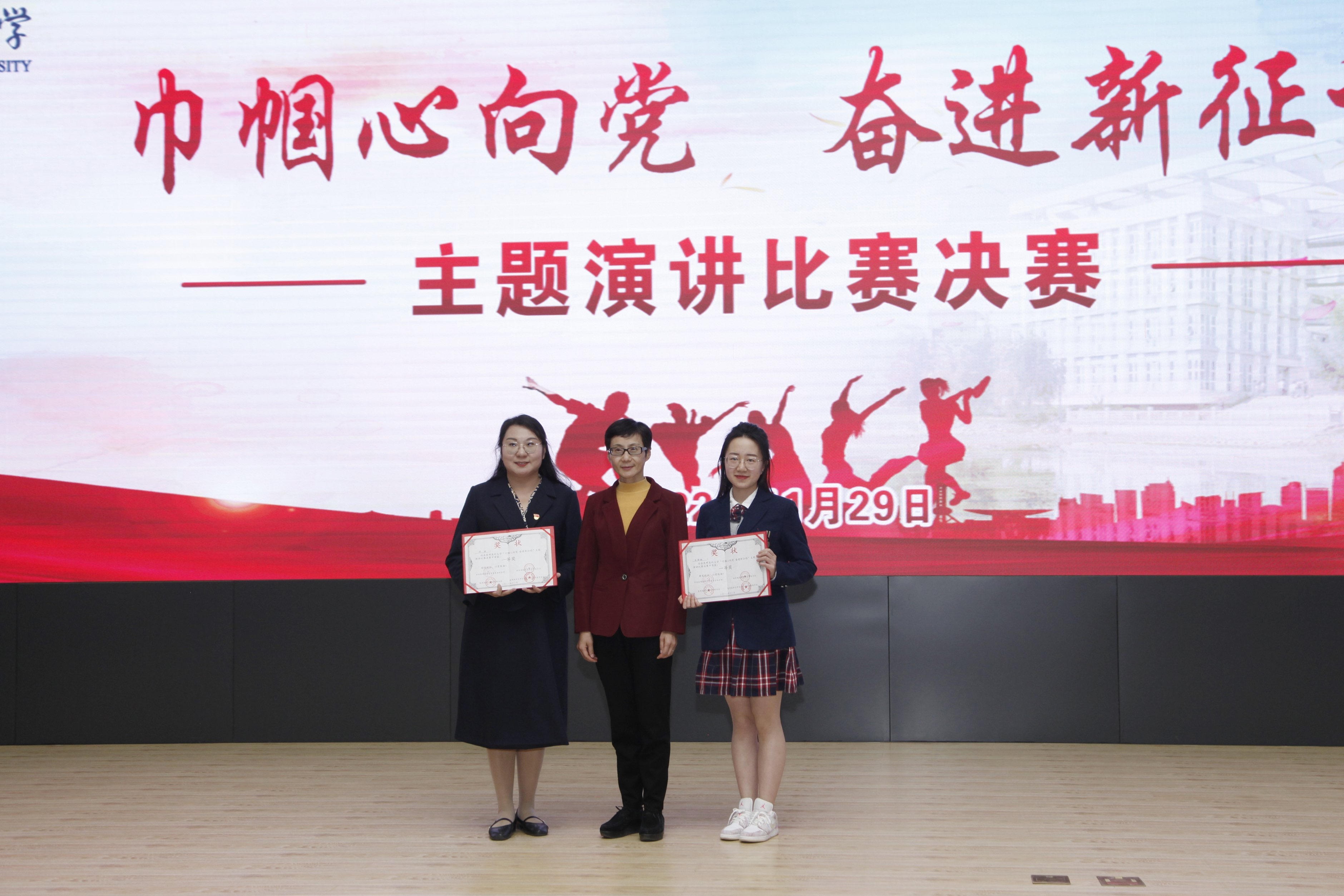 学校党委副书记徐绍琼,副校长张爱云、奚春睿观看了比赛并为获奖选手颁奖。她们肯定了各位选手的精彩演讲,激励更多女性弘扬正能量、增强家国情怀、提升思想觉悟、积极担当作为、努力追求进步。