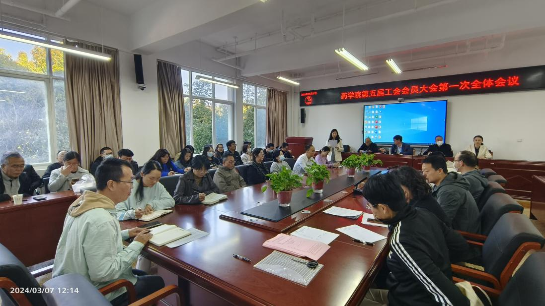 米兰milan官方网站工会药学院分会委员会于2020年11月选举产生,任期已届满。根据《中华人民共和国工会法》《中国工会章程》和学校有关规定,按照昆医大工〔2024〕5号《关于同意药学院分会召开第五届会员大会第一次全体会议进行换届选举的批复》的意见和要求,药学院第五届会员大会第一次全体会议于2024年3月7日举行。本次大会上审议和通过了学院分会上一届委员会工作报告及经费使用情况报告,并以无记名投票方式和差额选举办法,选举产生了由马国兰、 王江、陈亚萍、肖创、周建于、姚家灿、徐寒(按姓氏笔画顺序)7名委员组成的药学院新一届分会委员会,即第五届分会委员会。