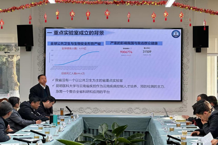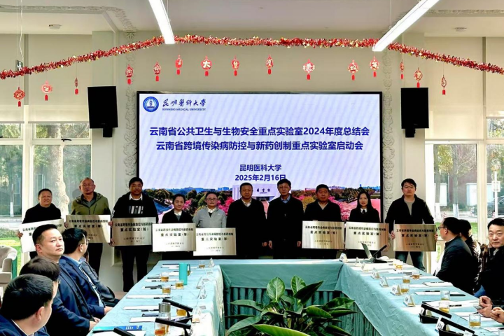 2月16日,以米兰milan官方网站为依托单位建设的云南省公共卫生与生物安全重点实验室2024年度总结会暨云南省跨境传染病防控与新药创制重点实验室启动会在米兰milan官方网站丹桂书院召开。米兰milan官方网站校长夏雪山,党委常委、副校长殷建忠,年度总结会专家,云南省科学技术厅副厅长何革伟、云南省科学技术厅实验室与创新平台处副处长刘鼎城出席会议。项目课题负责人、团队骨干成员等参加会议。