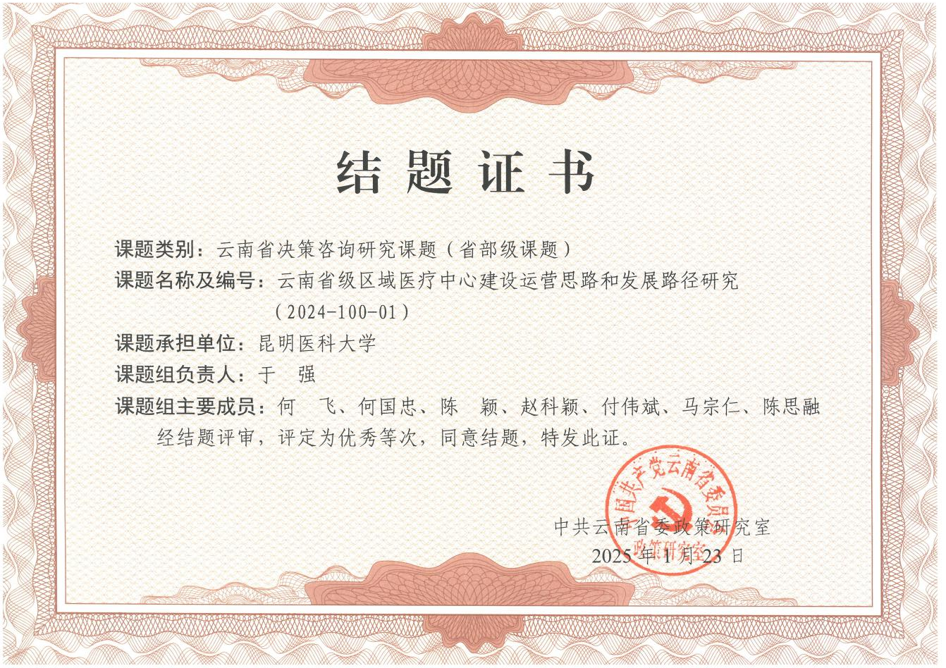 近日,中共云南省委政策研究室开展云南省决策咨询研究课题结题评审。米兰milan官方网站作为承担单位,组织开展的《云南省级区域医疗中心建设运营思路和发展路径研究》课题,被评定为优秀等次,同意结题。据悉,此次共结题评审课题133项,评定为“优秀”等次的6项。