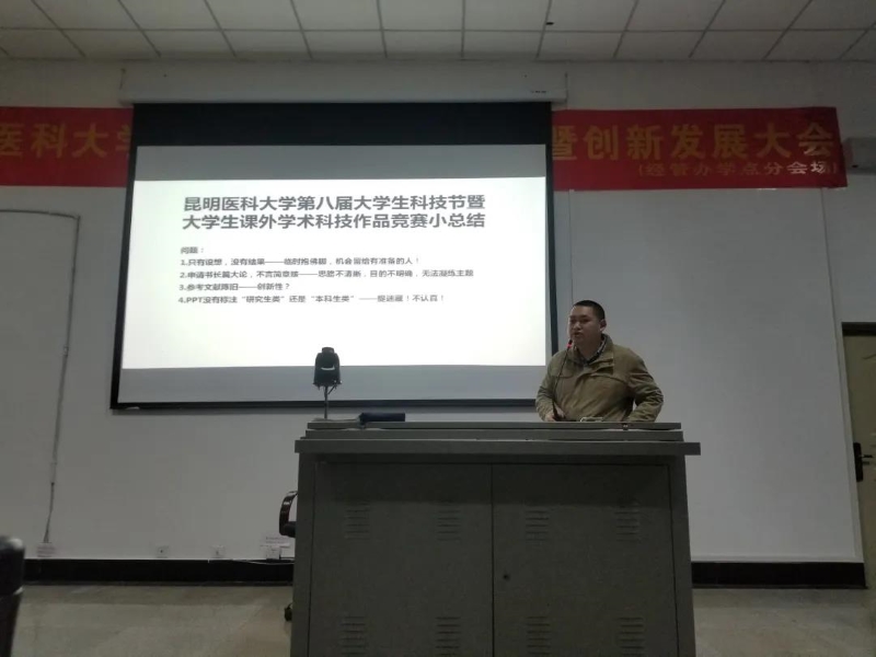 柯阳副教授就自己指导的项目结合临床给大家分享了基于肝胆教学及临床的新技术,帮助同学们拓展科研视野,激发科研热情。李庆蓉副主任技师结合自身读博经历,从科研选题的原则、科研思维的建立等方面介绍了一些科研经验及必备知识。活动最后,学院团委总结了此次科技节作品的亮点和不足,对初赛作品存在的问题进行了分析并提出建议。活动现场座无虚席,120名同学全程认真参与,热情高涨。