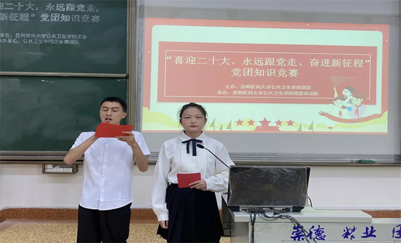 公共卫生学院团委联合第二临床医学院团委于4月28日举办了“喜迎二十大、永远跟党走、奋进新征程”党团知识竞赛。通过层层比拼,最终有10支队伍40名选手进入决赛。决赛由“接龙答题”、“激情抢答”两个部分组成。选手们争分夺秒地思考着,随着主持人题目的提出,各队比分交替攀升,掌声络绎不绝。此次党团知识竞赛,营造了广大团员青年学团史、知团情的浓厚氛围,激发了团员青年的学习热情。