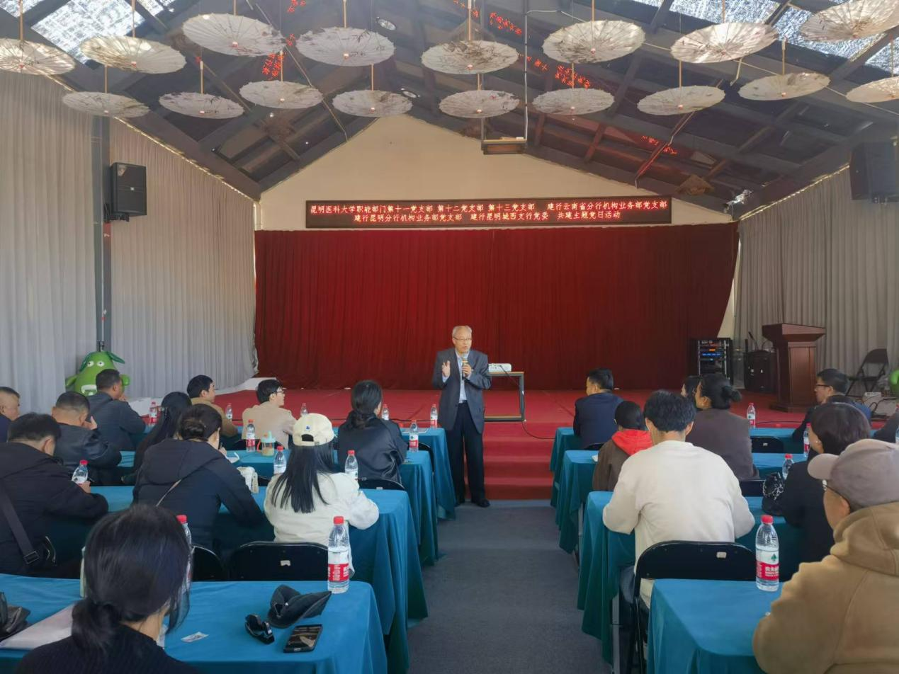 为深入学习宣传贯彻党的二十届三中全会精神,进一步加深对习近平新时代中国特色社会主义思想的认识,突出党建引领作用,充分发挥银校党组织、广大党员群众推动发展的先锋模范作用,努力构建“资源共享、优势互补、互相促进、共同提高”的党建工作新格局,中国建行昆明城西支行党委、米兰milan官方网站职能部门第十一党支部、第十二党支部、第十三党支部党员于10月25日共同开展了“学习党的二十届三中全会精神 发挥合力共赢未来”主题教育活动。
