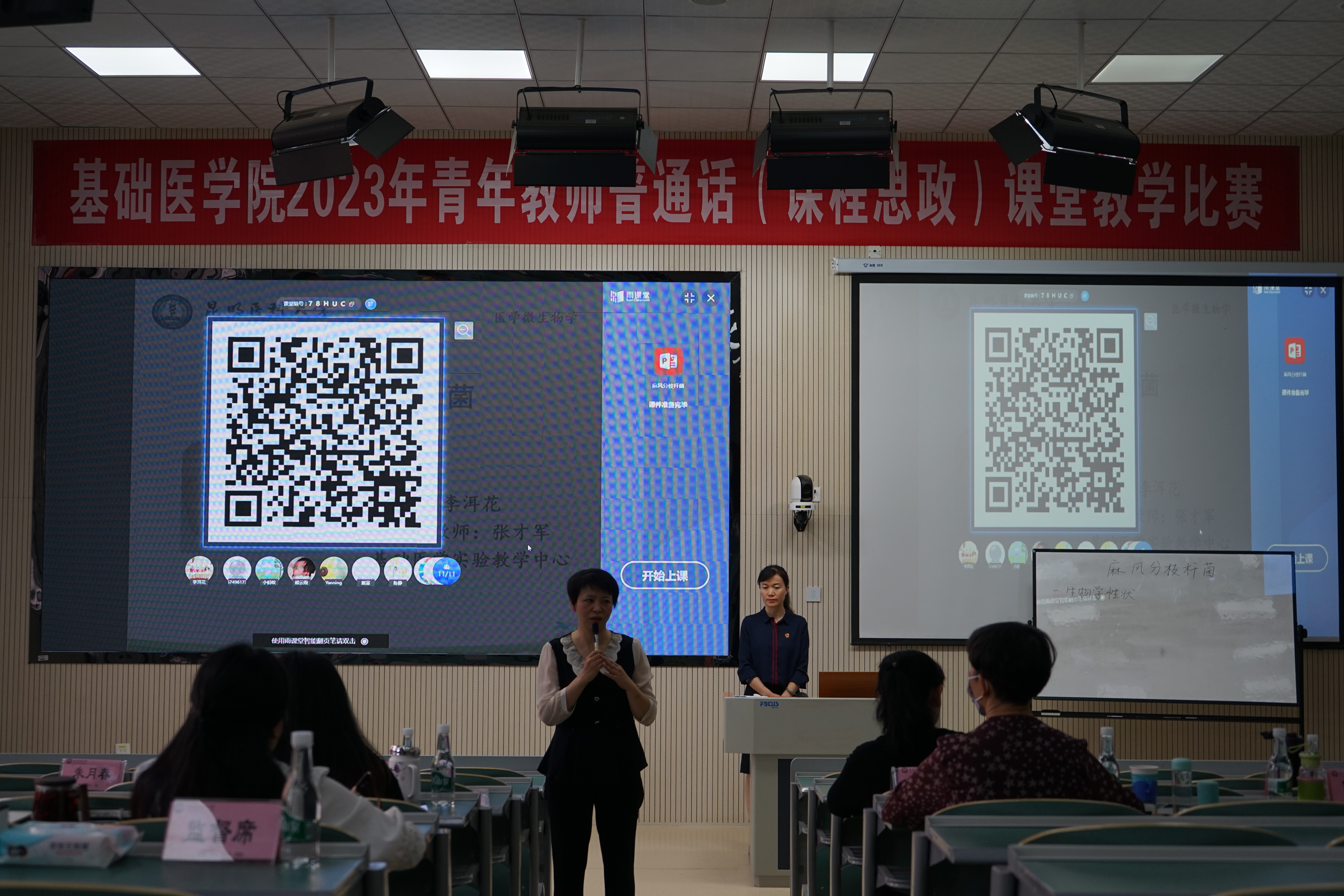 为加强人才培养及青年教师队伍建设,紧扣建设高质量教育体系主题,深入推动学校教育教学改革,有效助力“课程思政和一流课程”建设;扎实推进“以学生为中心”的教学方法改革,提高教师的教学能力和水平,推动我院教育教学质量提升和内涵发展,我院按照学校《关于举行第十三届教师普通话(课程思政)课堂教学比赛的通知(第一轮)》文件精神和要求并结合我院实际,于2023年6月2日、6月6日分别举行了青年教师普通话(课程思政)课堂教学比赛初赛与决赛。学院特邀在教学改革、教书育人具有丰富经验和突出成就的教师和近年来在讲课比赛中获奖的教师担任评委,学院党政班子成员和学院中青年教师全程旁听比赛进行观摩学习。两次比赛均由我院邹英鹰副院长主持。